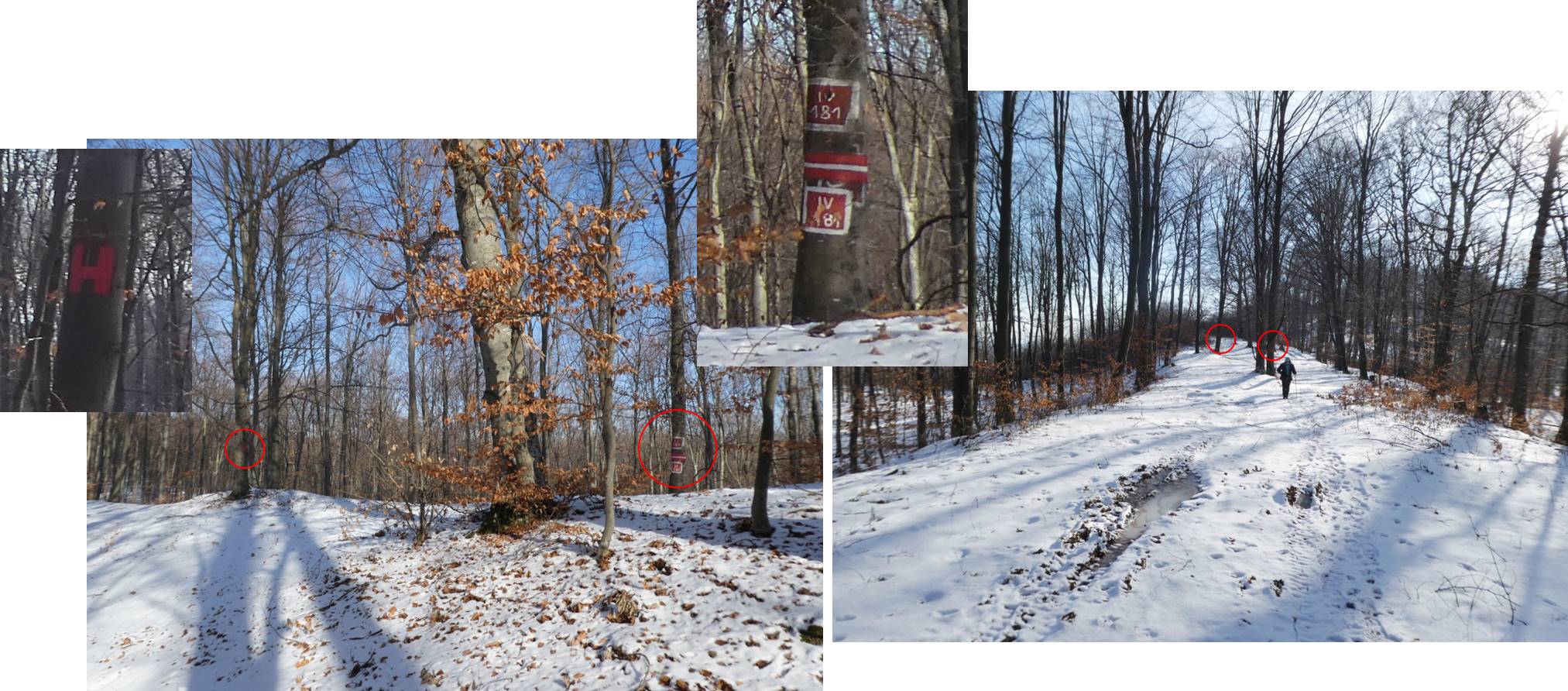 De altfel, această caracteristică, de “culme principală” este sugerată și de marcarea ei, vădită dincolo de borna IV 181, cu “H”-uri roșii un hotar între ocoale silvice. Noul marcaj chiar ne e de ajutor în a nu părăsi “culmea principală” …