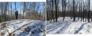 Traseul nostru își schimbă cu 90 de grade direcția, continuând spre nord-vest. Punctul de …. întoarcere este marcat de borna silvică IV 78 aflată la intersecția culmii ce reprezintă interfluviul dintre Valea Albă și Țolicea cu cea, să-i zicem principală a Dealurilor Bodeștilor, pe care vom merge în continuare.