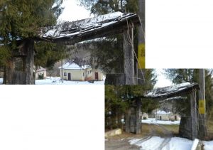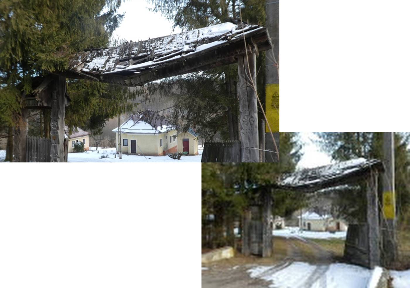 Până acolo culegem din marginea drumului imaginea mândră a porții de la intrarea în curtea unei cabane silvice.