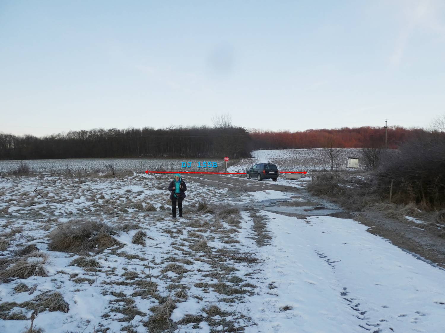 … la drumul județean 155B, Dobreștii de Jos – Țolici, pe care avem de mers exact 700 de metri până la punctul în care am intrat în traseu.