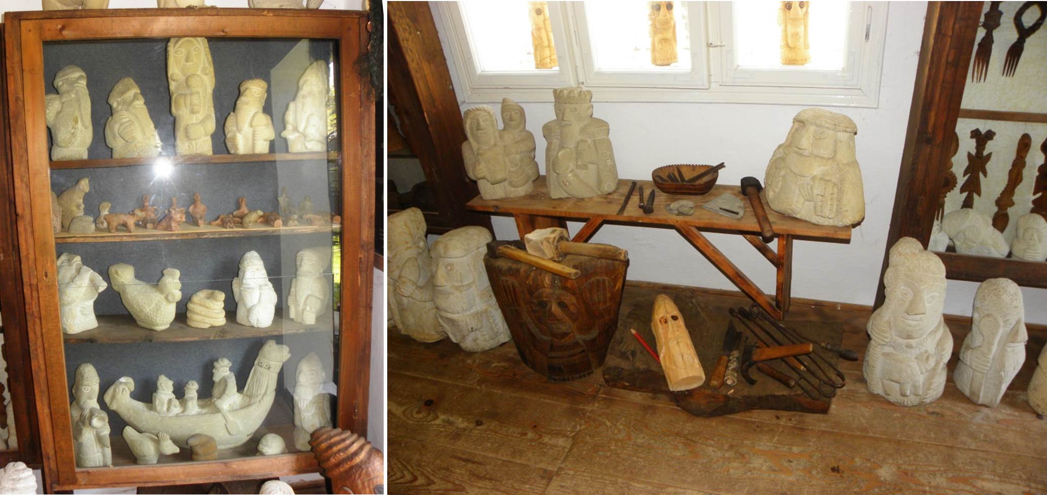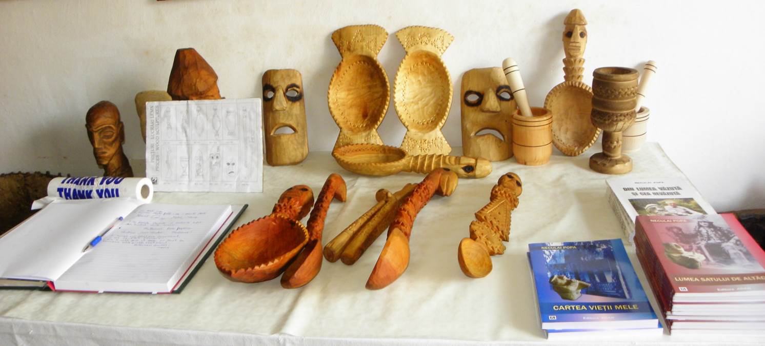 Se pot cumpăra obiecte sculptate în lemn, precum și cărțile scrise de Neculai Popa: