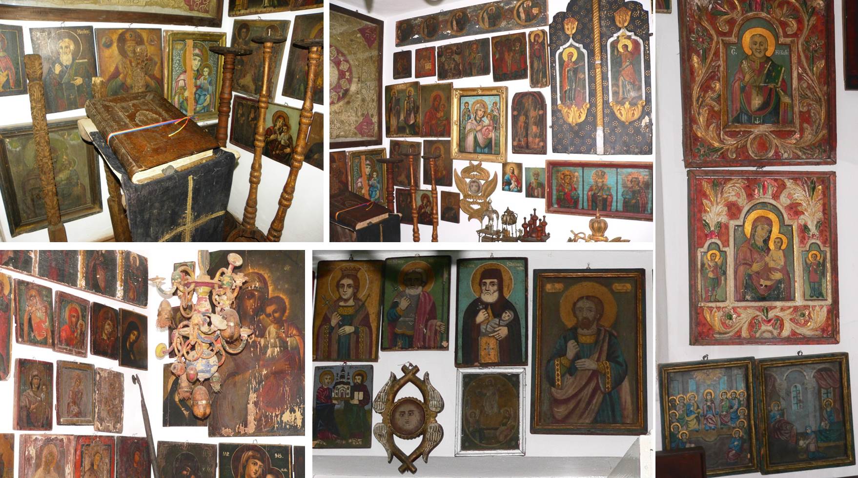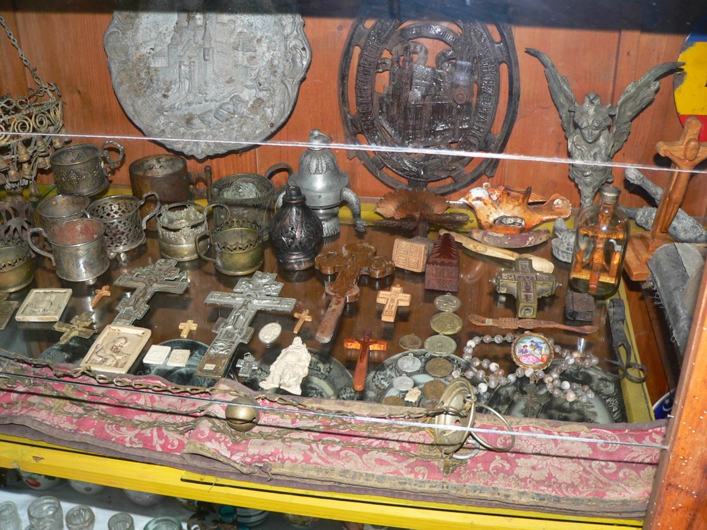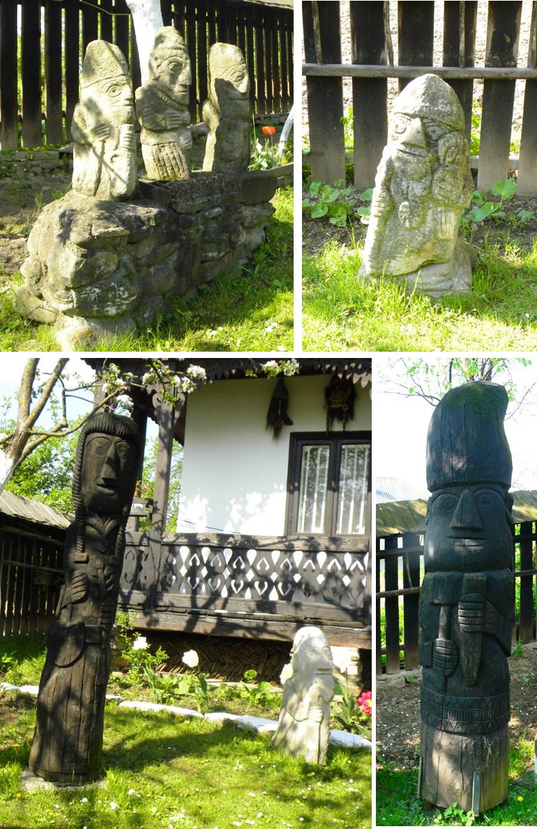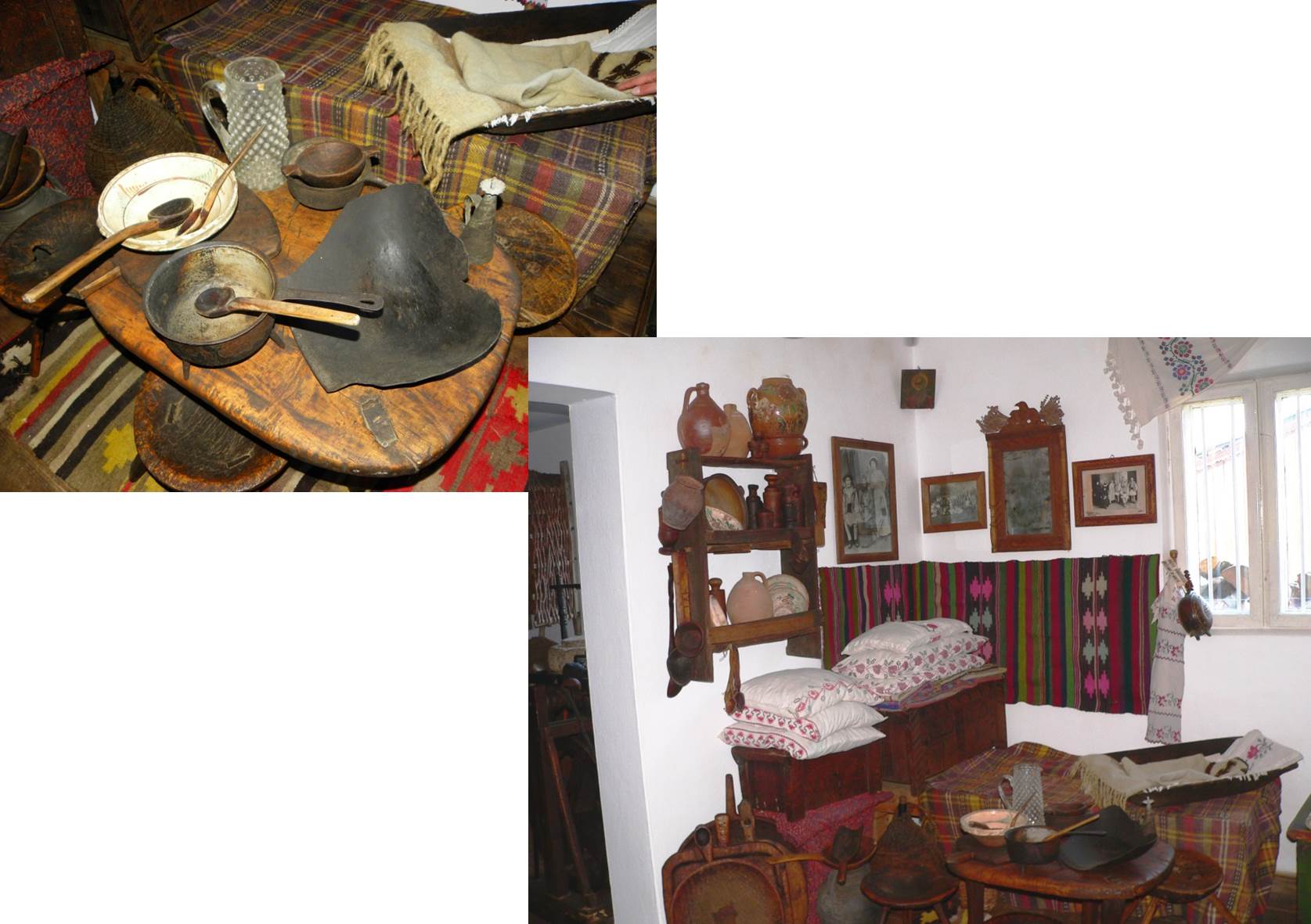 Nicolae Poapa (1919-2010). Sunt expuse lucrări personale – sculptură în lemn și piatră, pictură naivă, artă populară -, dar și o gamă extrem de diversă de obiecte colectate sau colecționate de-a lungul vieții sale: “costume populare, obiecte casnice din lemn, sticlă, marmură, porţelan, ceramică, fier, tablă, aramă, cornuri sculptate, prosoape, cojoace şi bundiţe, curele din piele cu mărgele, curele ciobăneşti cu rozete, talăngi şi clopote (…), unelte pentru păstorit, rîşniţe pentru măcinat, ceasuri, gramofoane şi patefoane, ouă încondeiate, sumane din lînă cu sărad, obiecte de ţesut lînă şi cînepă, icoane pictate pe lemn şi pe sticlă, numismatică, insigne, decoraţii, tablouri şi fotografii vechi, săbii, harbalete, suliţe, ghiulele de tun şi pistoale cu petiţă, plus foarte multe obiecte de cult religios (…), un plug de lemn, o tunică de roşiori din garda lui Cuza, un bucium şi un costum complet ciobănesc, cobzele şi vioara lăutarilor (…) ” (Neculai Popa – Povestea vieții mele – Editura Adan, Piatra Neamț, 1996)