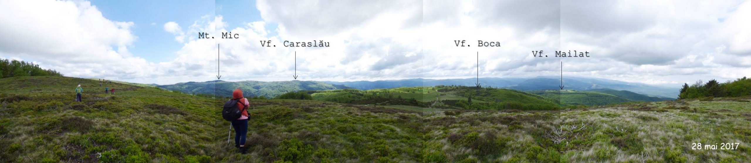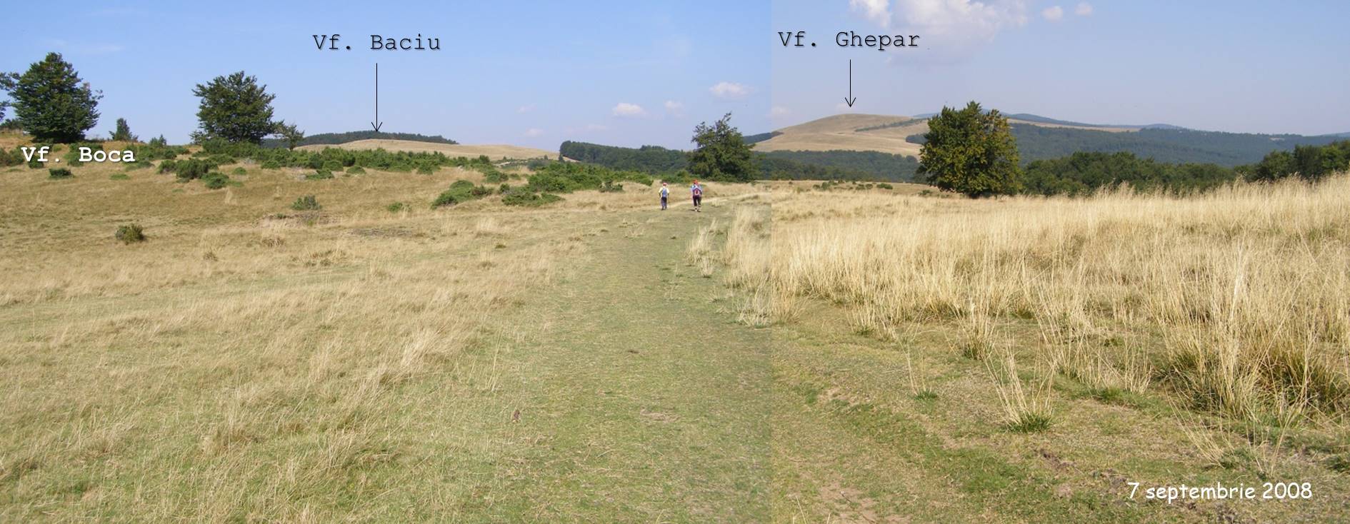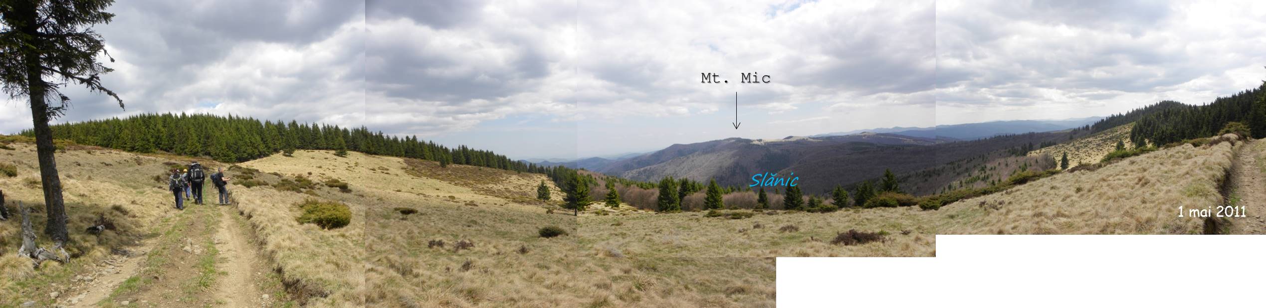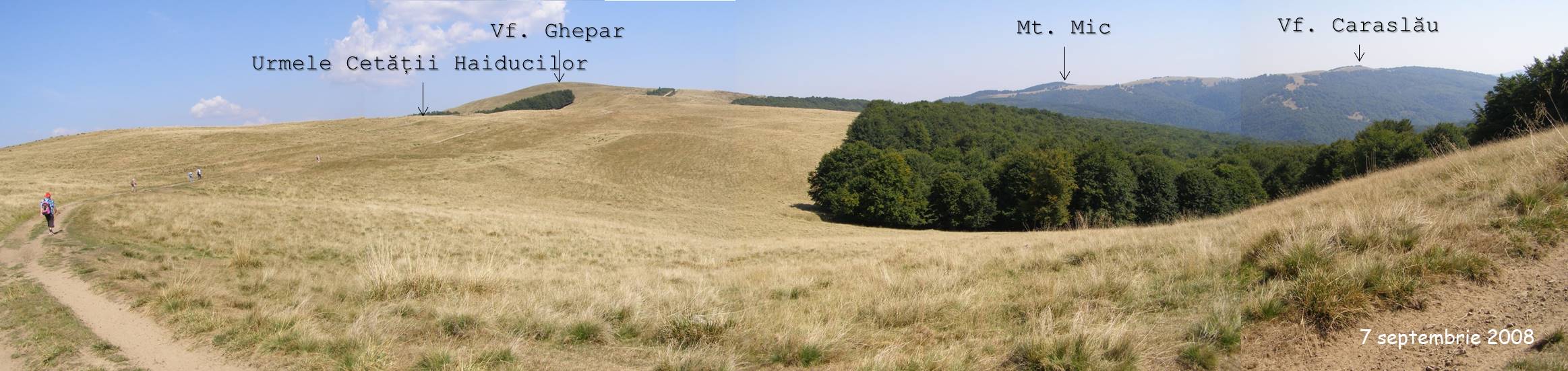 Dincolo de Vârful Ghepar, racordul dintre culmea principală și culmea secundară Muntele Mic-Caraslăul Mare este evitat …