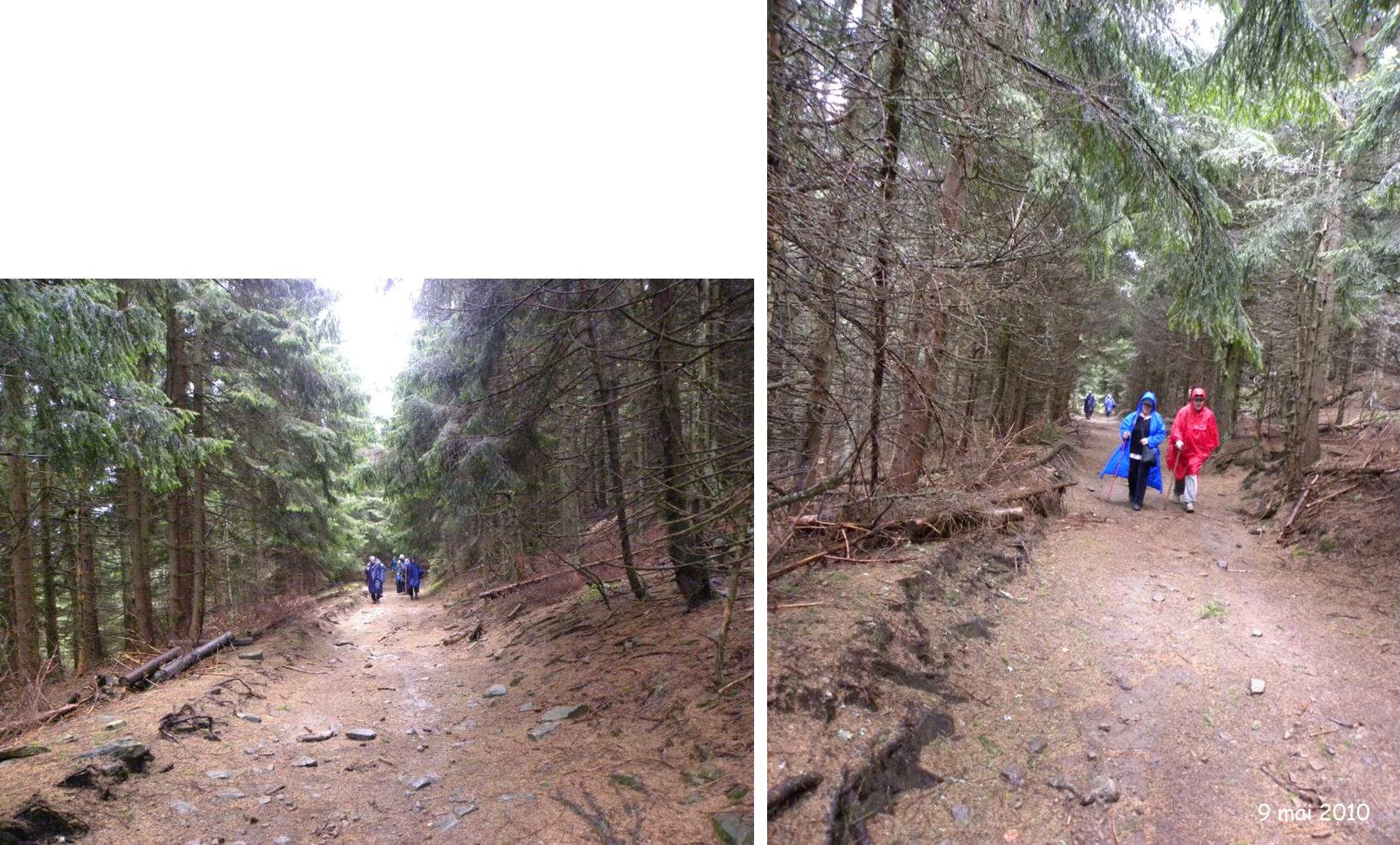Reintrăm în traseul marcat, care ocolește pe versantul vestic Vârful Ceangău …