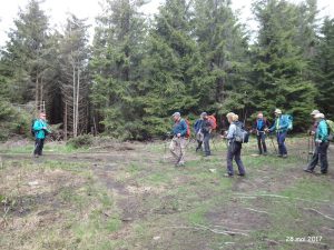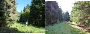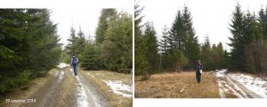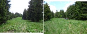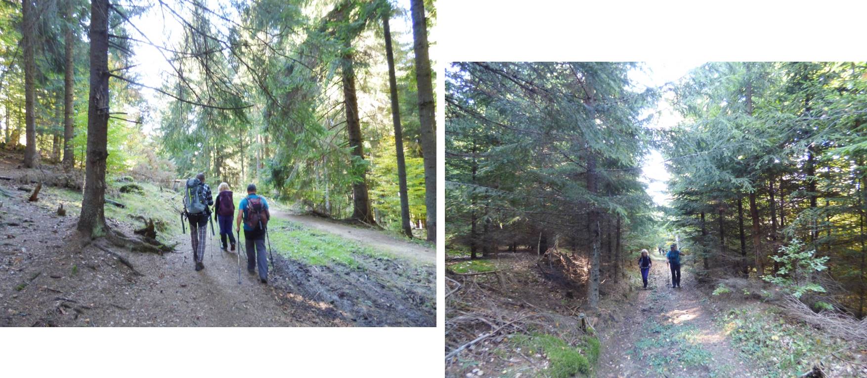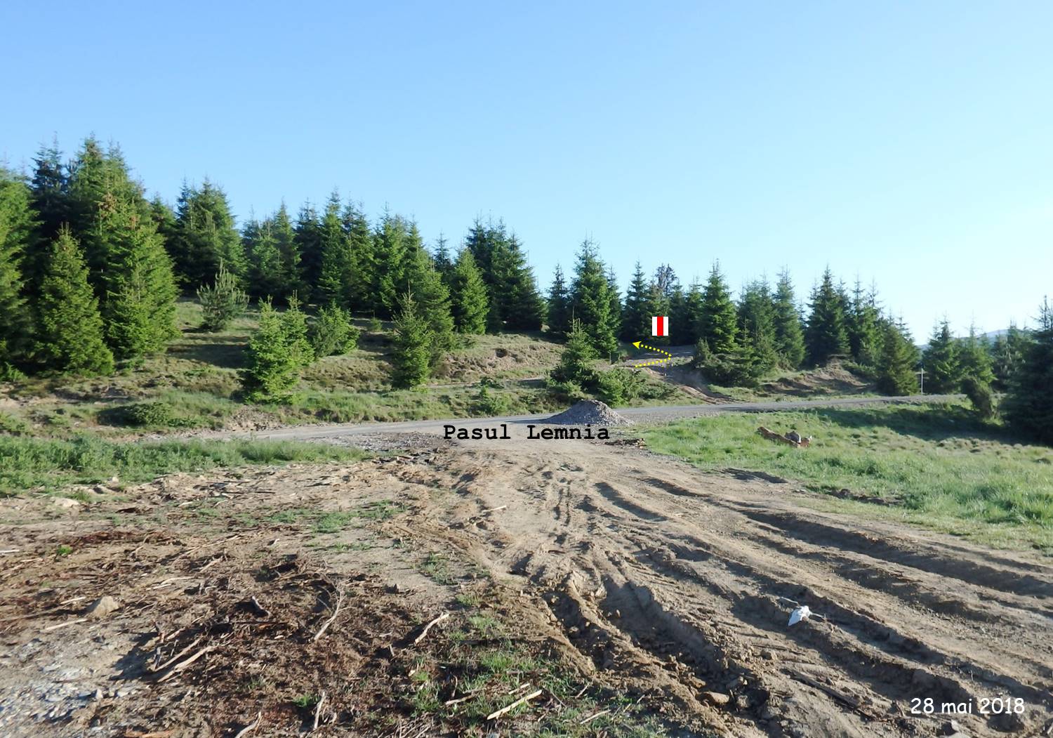 … deși, din Pasul Lemnia nu mergem decât de vreo 20 de minute, dar aproape de o oră din poiana de sub Muntele Negru. Ne oprim la o intersecție de unde pleacă spre stânga un drum forestier ce coboară pe un afluent al Lemniei; noi vom rămâne fideli direcției vest ! E însă aici și timpul, și locul pentru poas !