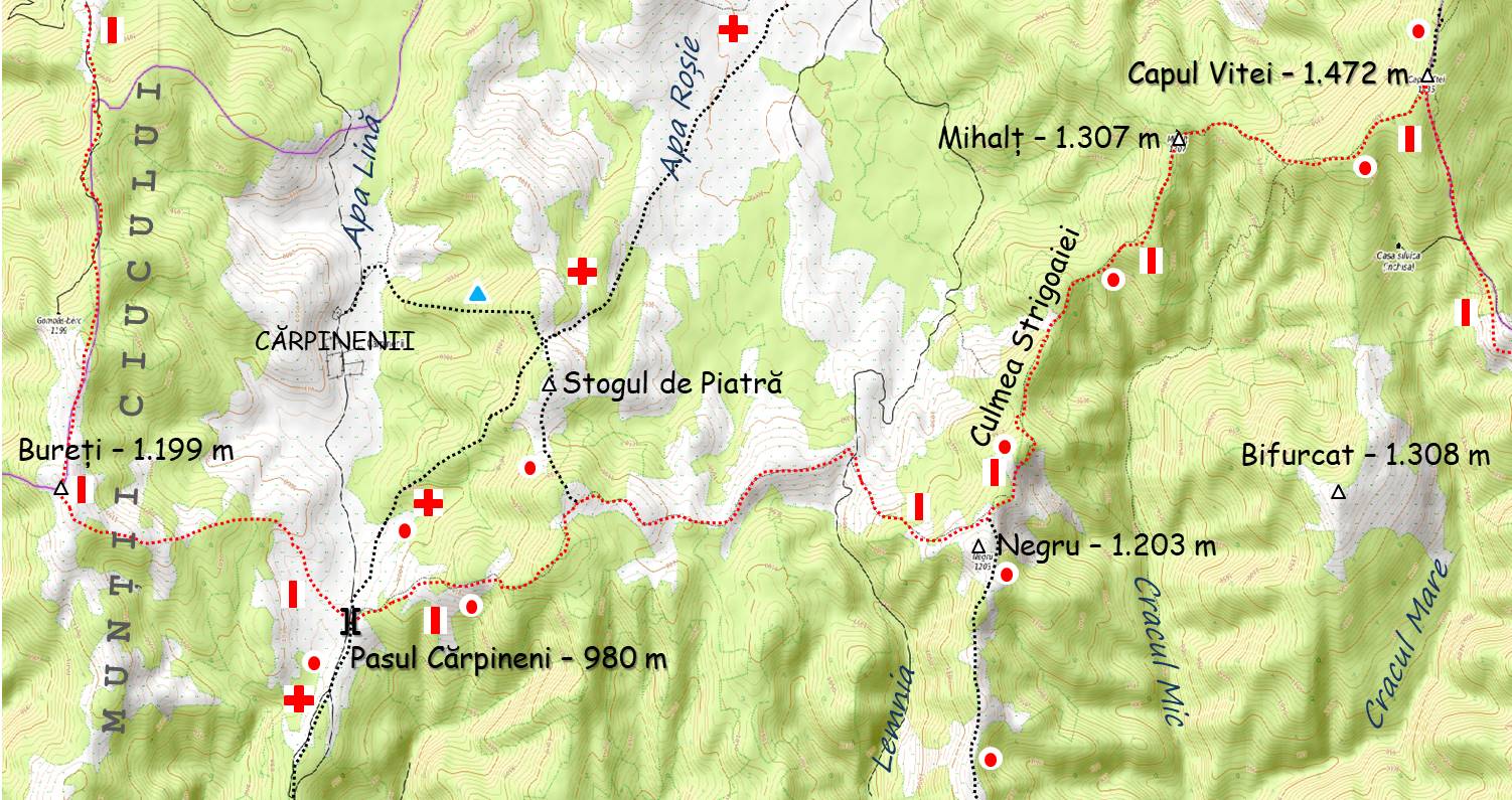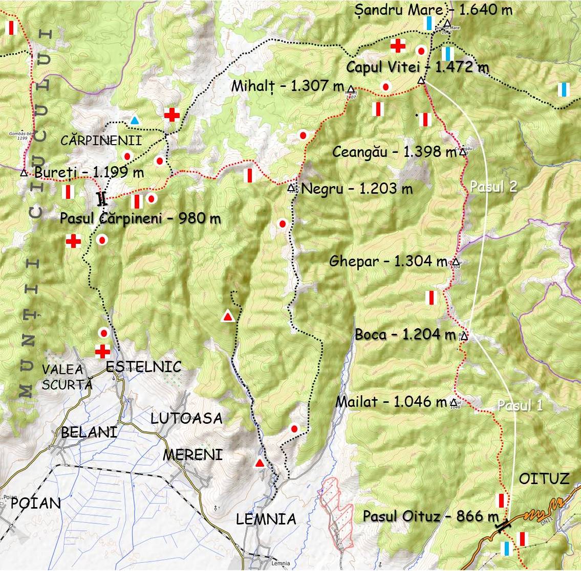 Din Pasul Lemnia până în Pasul Cărpineni nu există niciun fel de problemă, drumul fiind ca cel dintre Muntele Negru și Pasul Lemnia. Din Pasul Cărpineni se poate coborî, tot pe drum forestier, în Estelnic sau se poate sui pe culmea Munților Ciucului și coborî, pe drum forestier bun în Sânzieni, iar de aici, pe sub munte, înapoi în Lemnia (ca lungime, traseul e cam cât cel din Pasul Oituz în Lemnia). În cazul ultimei variante sunt câteva obiective culturale: ex., capelele de pe Dl. Perko și Cetatea de la Sânzieni. Dacă mai aveți nevoie de informații, suntem disponibili oricând, cu tot ce știm ! Succes !