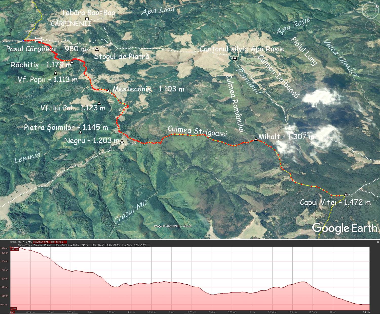 – punct de sosire: 46.147727N, 26.203707E, 980 m alt.