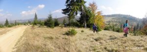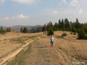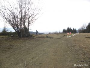 Marcajul bandă roșie va lipsi cu desăvârșire, dar pe culme – în cvasitotalitate neîmpădurită – este așternut un drum de tractor care ne va duce, fără greș …