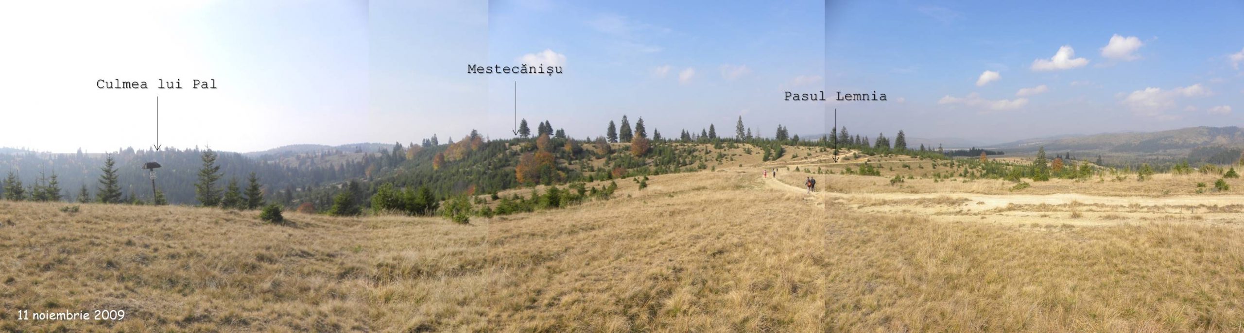 De pe platoul somital al Mestecănișului urmează o mică șa, cumpănă de ape între două obârșii ale Lemniei și Apei Line, ce precede muntele Răchitiș !