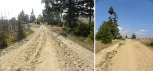 Marcajele urmăresc, strict pe culmea împădurită, un … strașnic drum forestier (folosit și de off-road-iști).