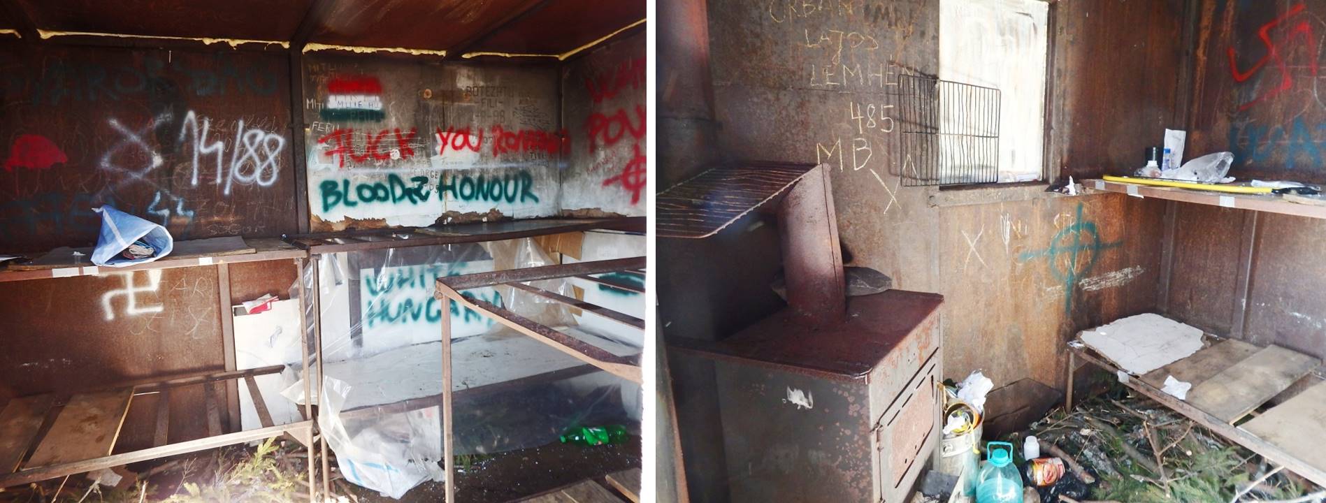 … este relativ practicabil (există o sobă și schelete metalice, mai mult sau mai puțin complete, ce țin loc de paturi, dar și … gunoaie cât cuprinde), …