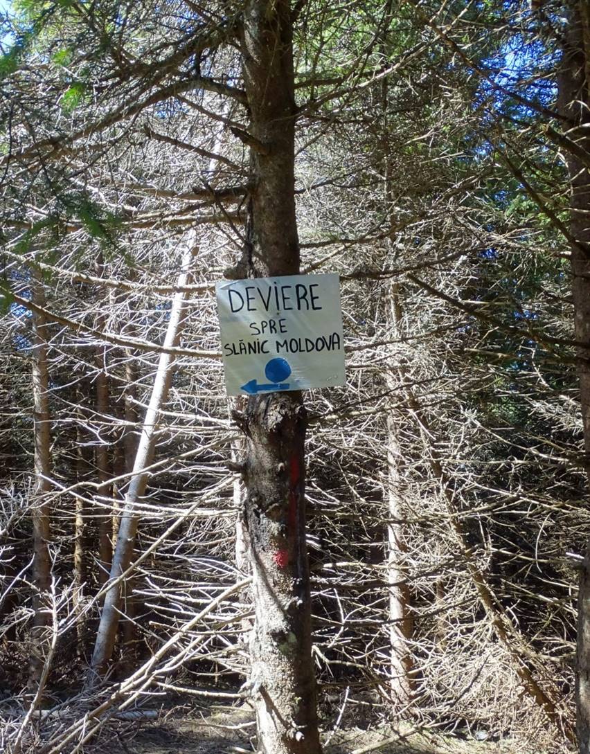 Alte inadvertențe între teren și hărți sunt cele aferente “benzii albastre”, un traseu, în general, bine marcat de la un capăt (Slănic-Moldova) la celălalt (coada Lacului Poiana Uzului). Ieșirea sa pe creasta înaltă a Nemirei și, implicit racordul cu “punctul roșu” se petrece aproximativ la jumătatea distanței dintre Capul Vitei și Șandru Mare, poate mai aproape de acesta din urmă, dar înainte (urcând) să apară în creastă, venind din stânga, “crucea roșie”.