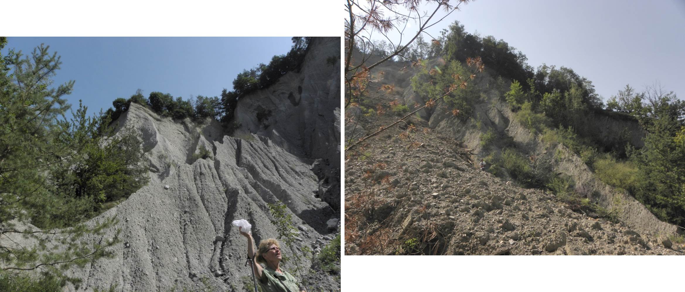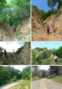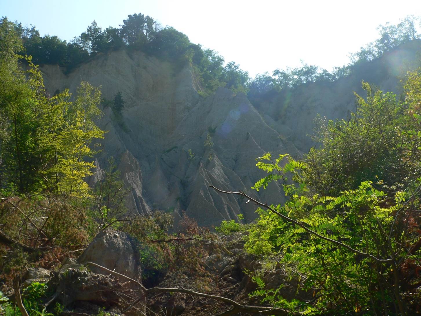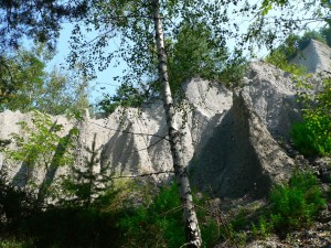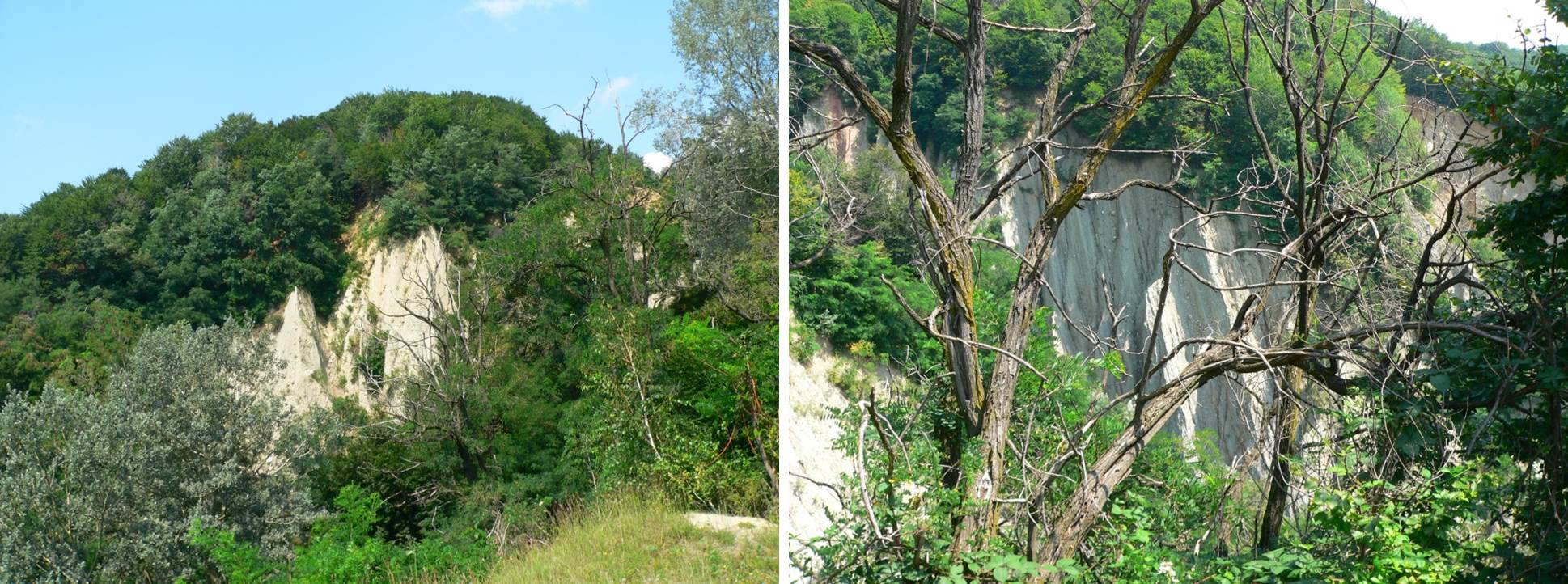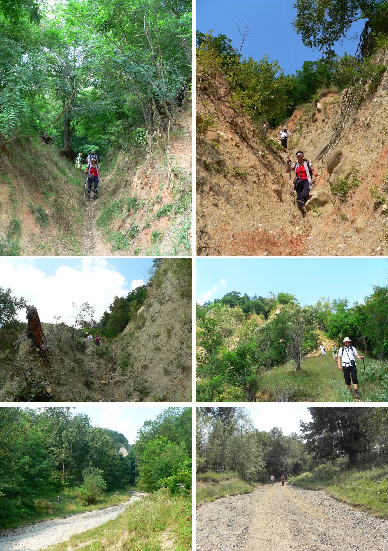 … ce ne duce spre latura nordică a … ansamblului de piramide: martori ai eroziunii conjugate a apei de precipitație, înghețului-dezghețului și vântului produse asupra unor strate formate din nisipuri, pietrișuri și argile, slab cimentate.