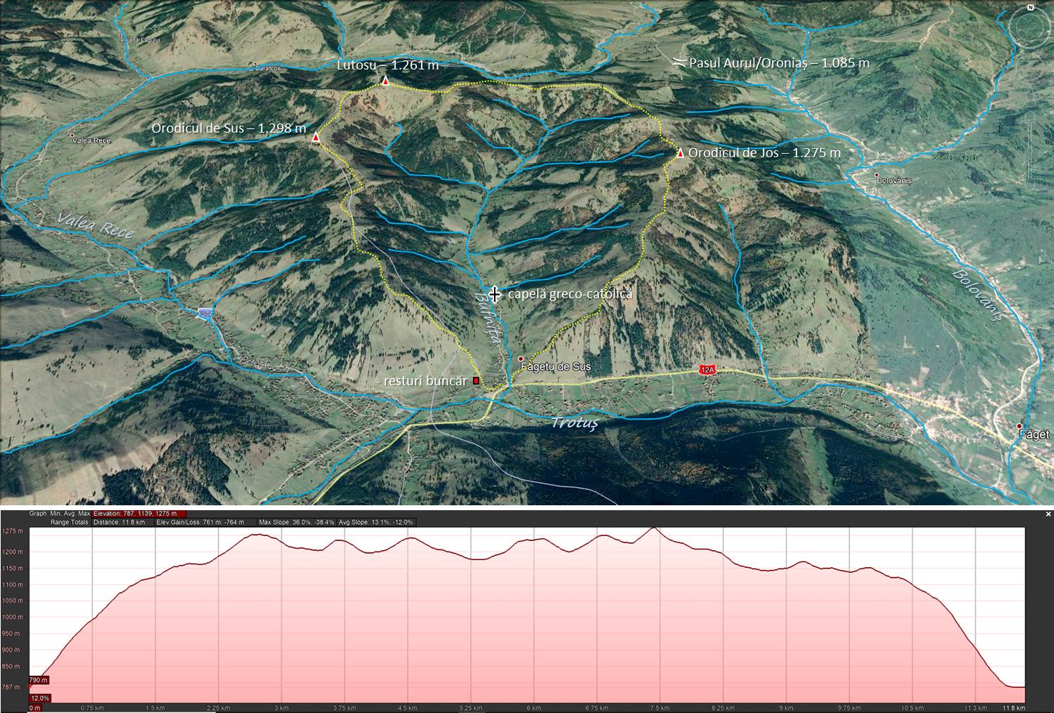 Drumul ține aceeași curbă de nivel ți pe sub Orodicu de Sus, …