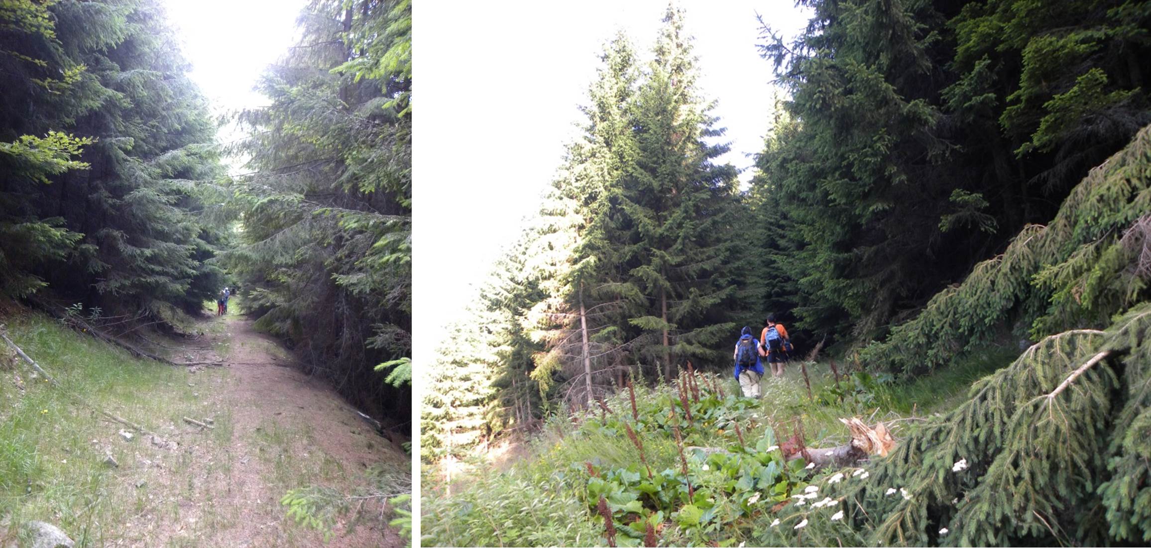 Intrăm în traseu la … modul lejer, urmând drumul forestier de pe vale.