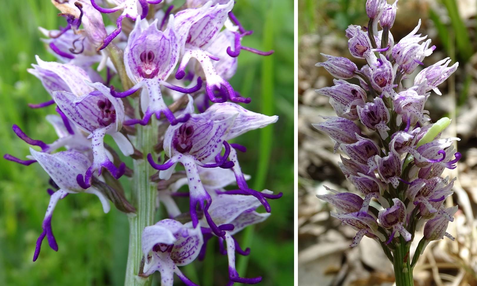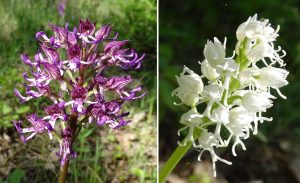 Cu multe dintre aceste flori ne vom mai întâlni pe parcursul traseului – dar nu le vom mai consemna; evidențiem însă varietatea coloristică a speciei Orchis simia …