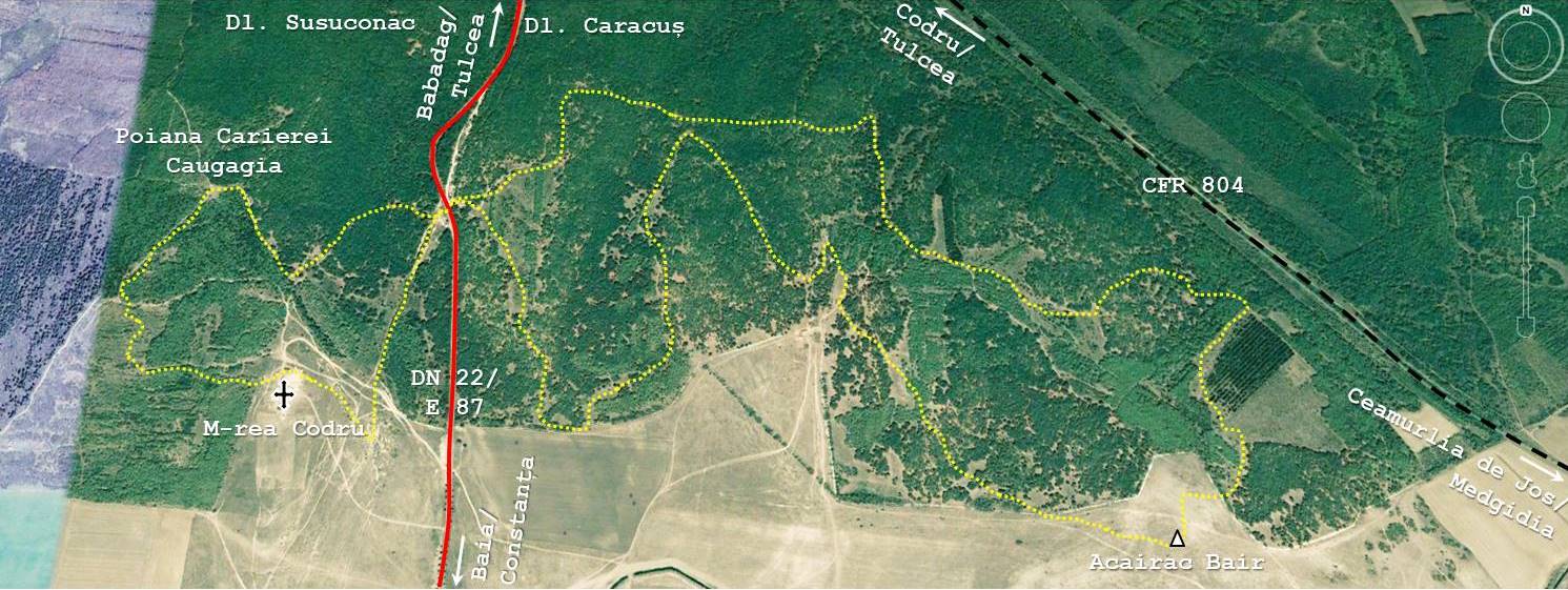 De cum traversăm șoseaua intrăm în labirintul golurilor din marginea de sud – sud-est a Pădurii Babadag, țintind – ca idee și cu aproximație, Dealul Acairac Bair.