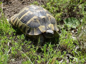 … o țestoasă-dobrogeană (Testudo graeca), …