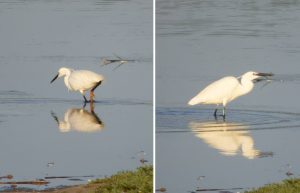 Oprim pentru un mic dejun frugal pe malul Dunării Vechi. Un stârc-alb/egretă-mică (Ardea garzetta) se iocupa cu același lucru …