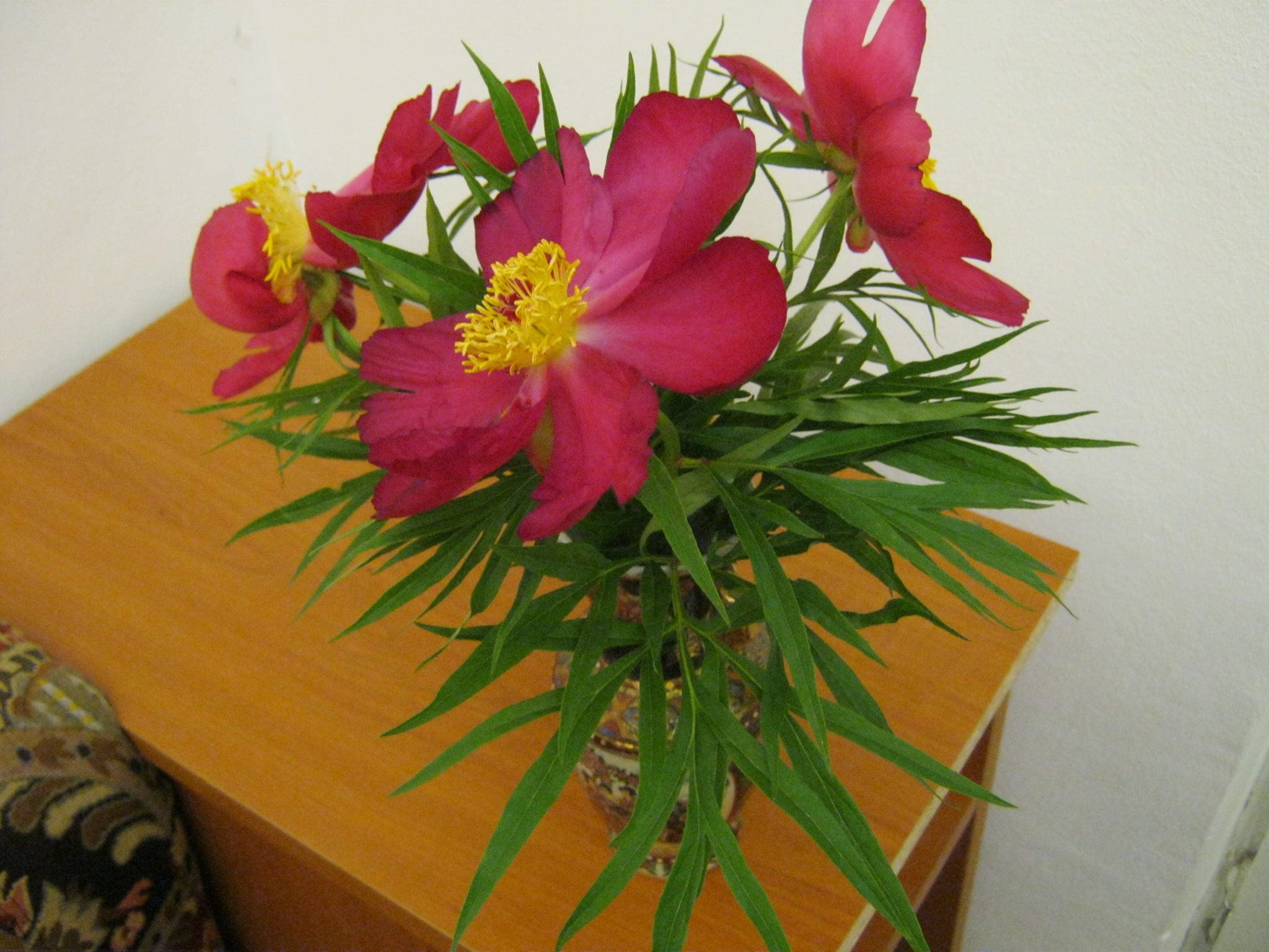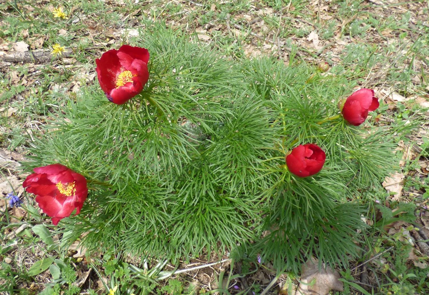 Paeonia tenuifolia L.(14, inconfundabilă cu oricare dintre toate celelalte specii – datorită laciniilor filiforme din care sunt constituite frunzele – are o arie de răspândire ce pleacă din Munții Caucaz, acoperă nordul Mării Negre și se oprește în Peninsula Balcanică (Serbia, România și Bugaria). În țara noastră poate fi văzut în Dobrogea (ex. Vf. Teke/Dealurile Niculițelului și Greci/TL, Basarabi, Murfatlar, Techirghiol, 23 August/CT), Colinele Elanului/VS, dar și în Pădurea Crihala/Drobeta-Turnu Severin, la Moldovița/CS sau la Zăul de Câmpie/MS.