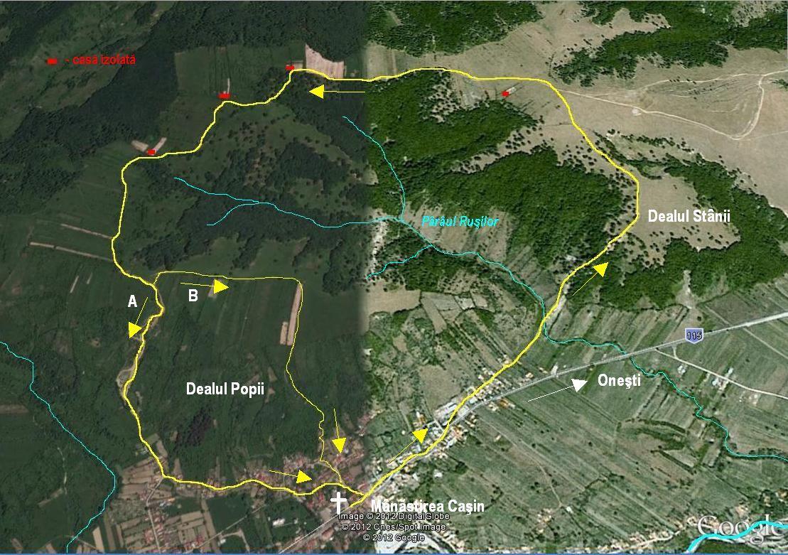 Mânăstirea Caşin – Gura Pârâului Ruşilor – Dealul Stânei – interfluviul Caşin-Curiţa – Dealul Popii – Mânăstirea Caşin
