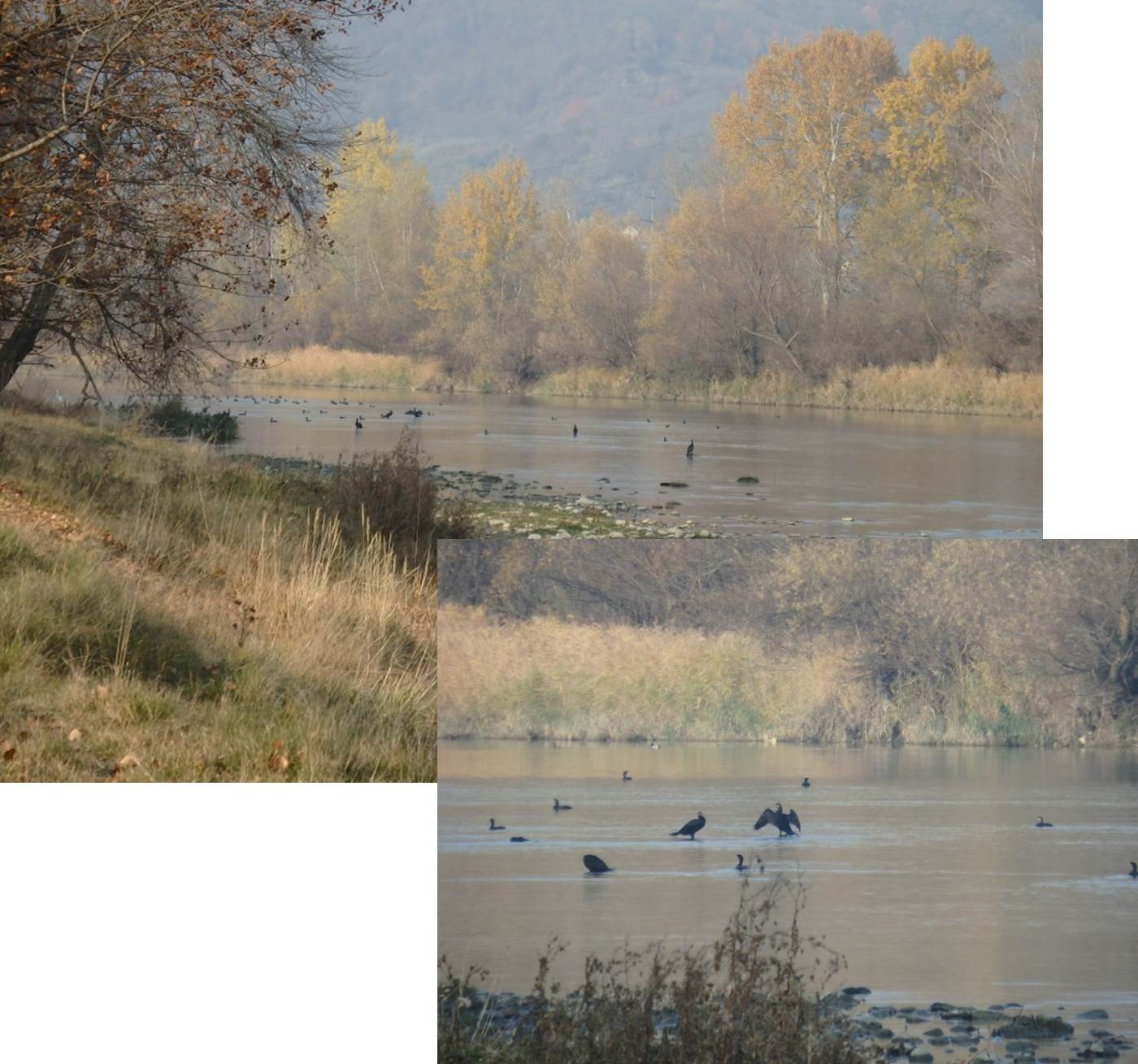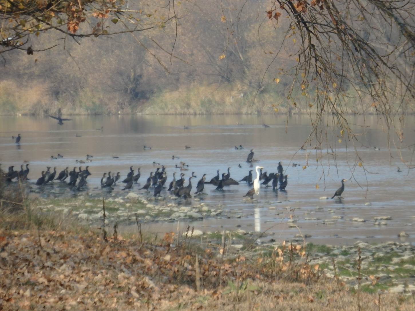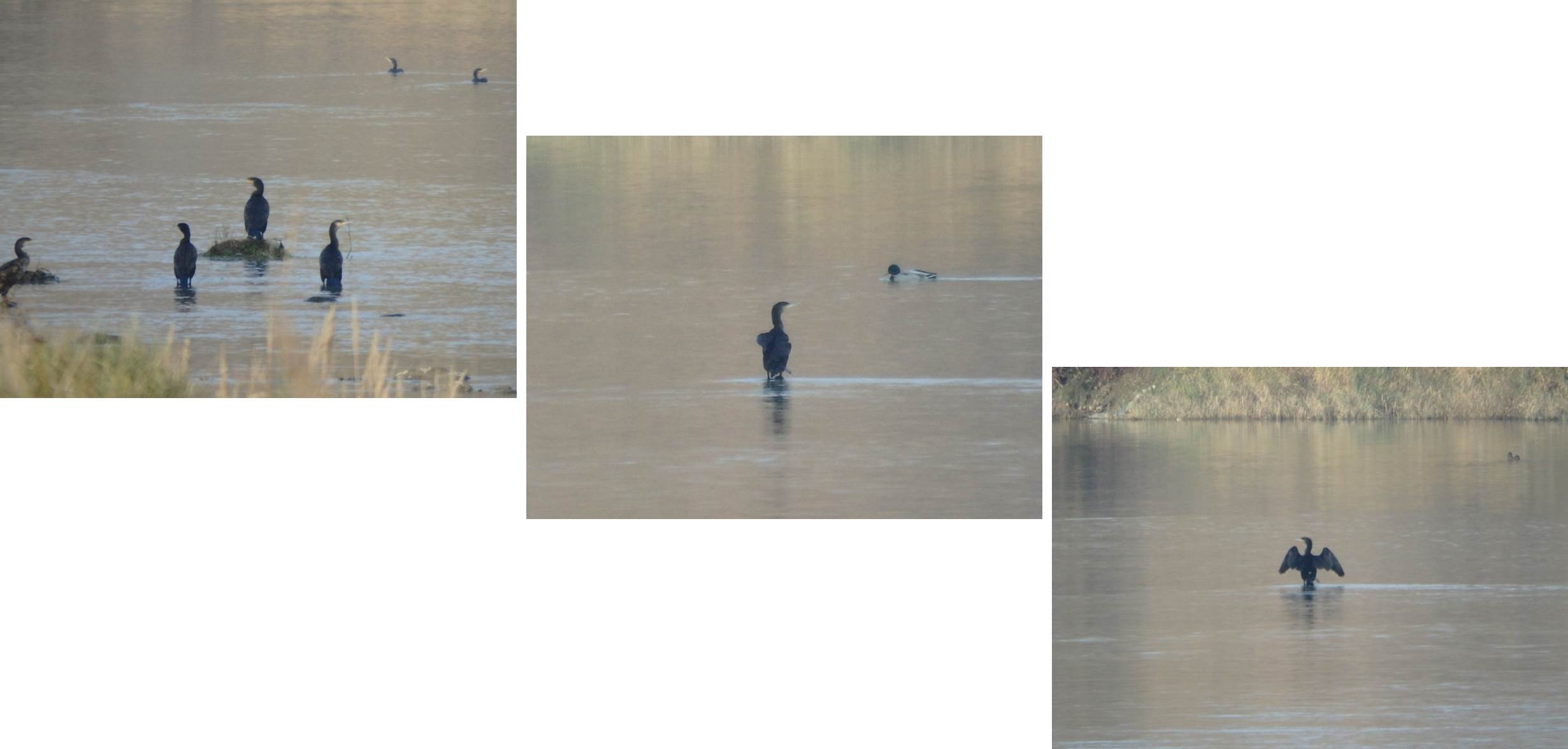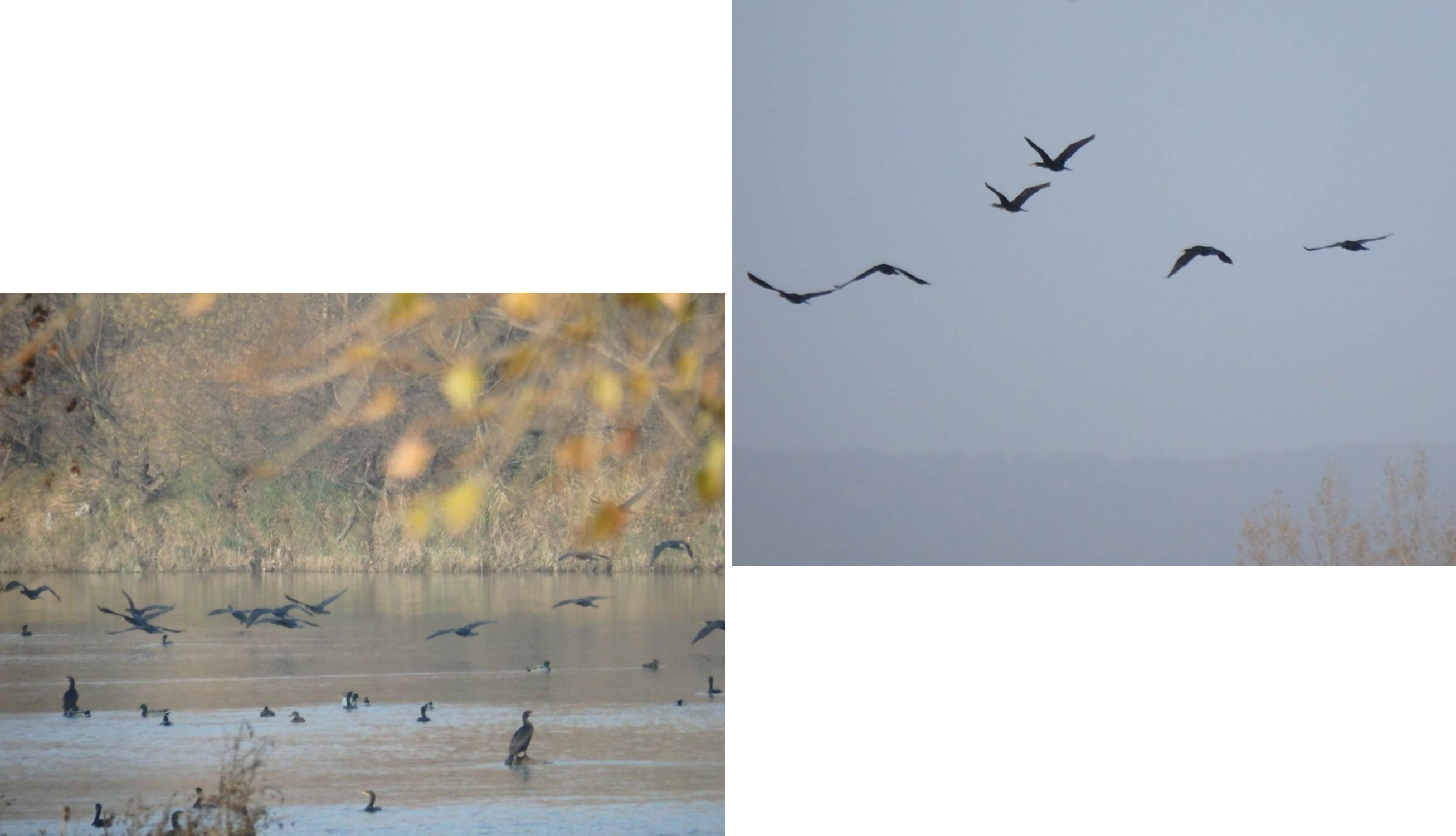 Din văzduh, … aterizează o escadrilă de cormorani (Phalacrocorax pygmeus), …