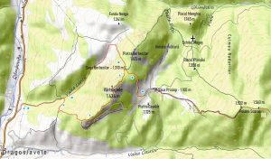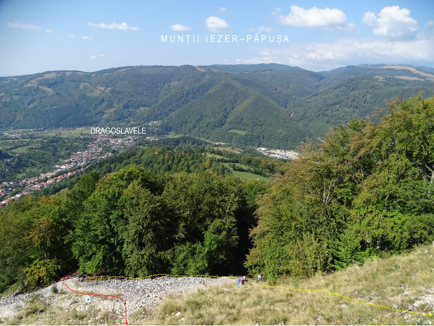 … care ne conduce rapid sub trena de grohotiș din capătul … aval, vestic, al abruptului sudic al Pietrei Dragoslavelor !