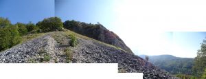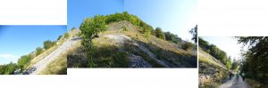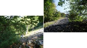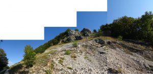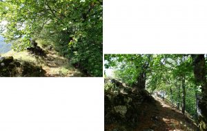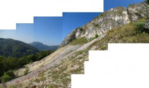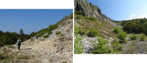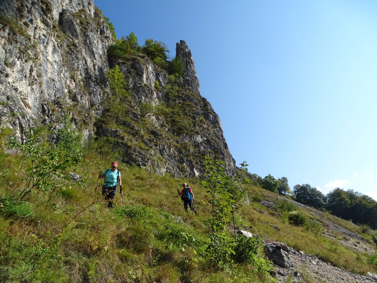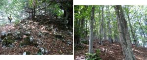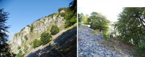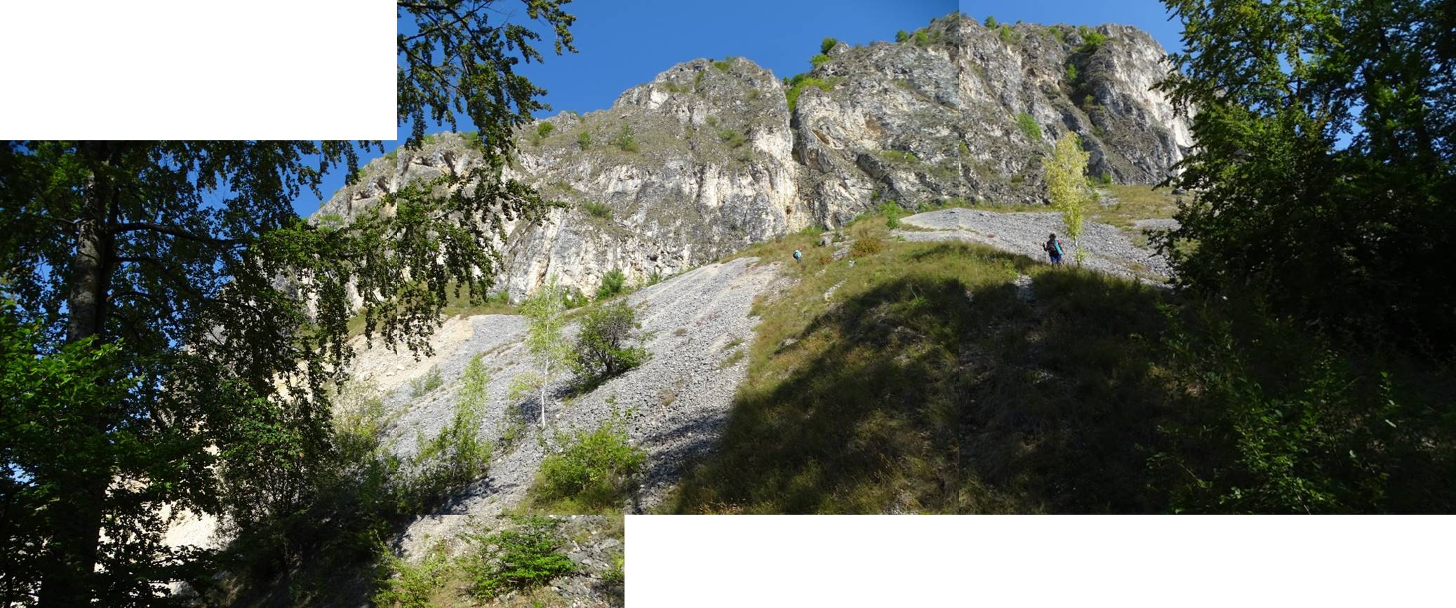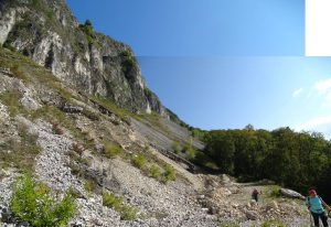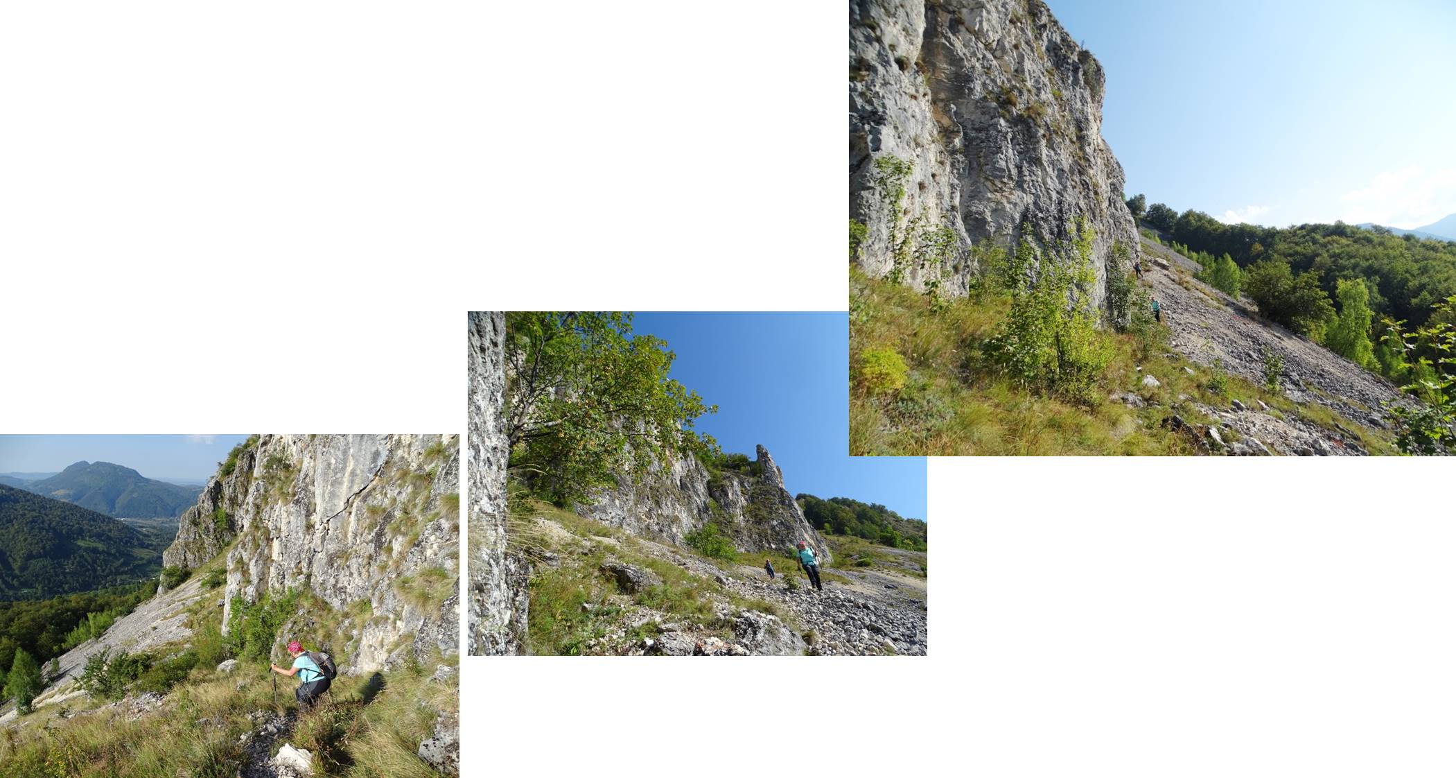 … la baza căreia este o trenă lungă de grohotiș, largă cât ține abruptul ! Plimbarea pe sub abrupt se poate face pe la baza pădurii și a trenei de grohotiș, dar noi hotîrâm să o facem pedeasupra trenei, …