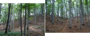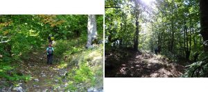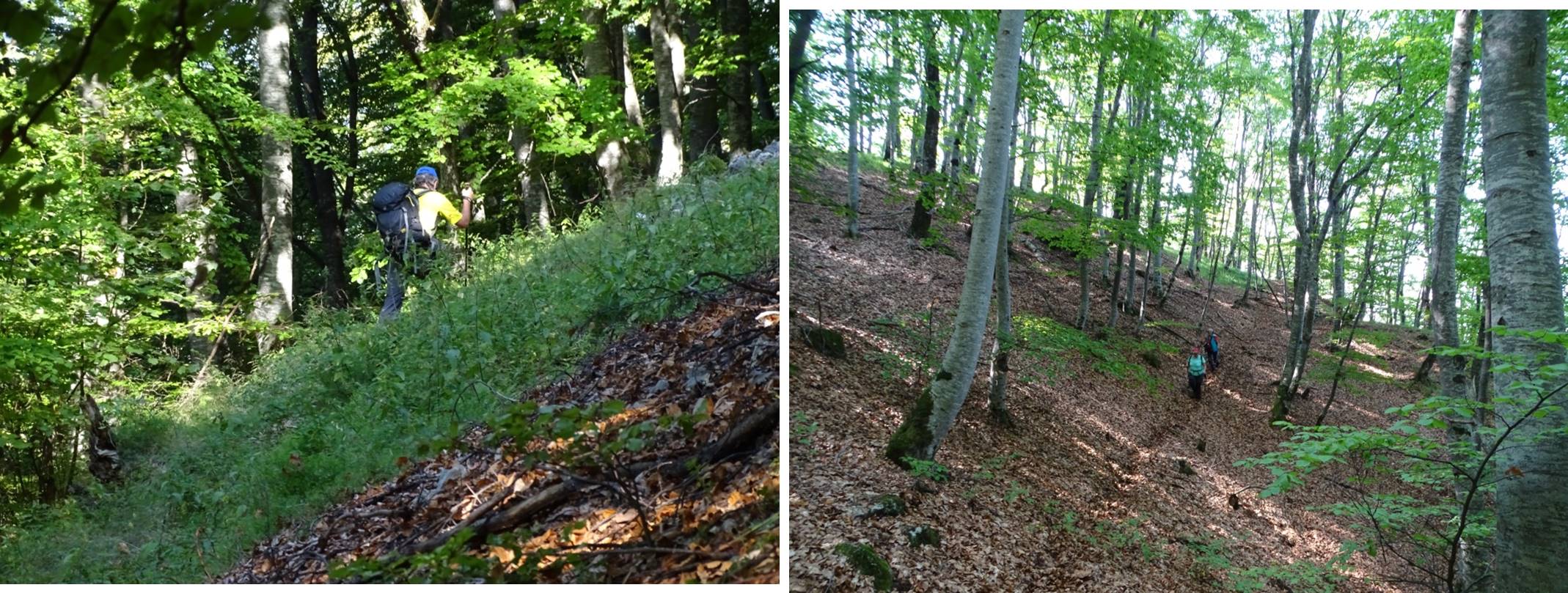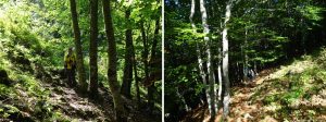 Prin pădure, pe o pantă inițial mai accentuată, …