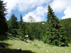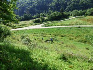 Poteca noastră traversează o mare poiană – fostă pășune – …