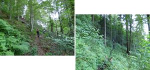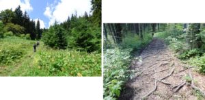 Marcajul și poteca sunt absolut … OK … până ce ajungem la marginea unui fost parchet, …