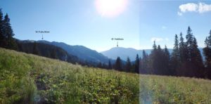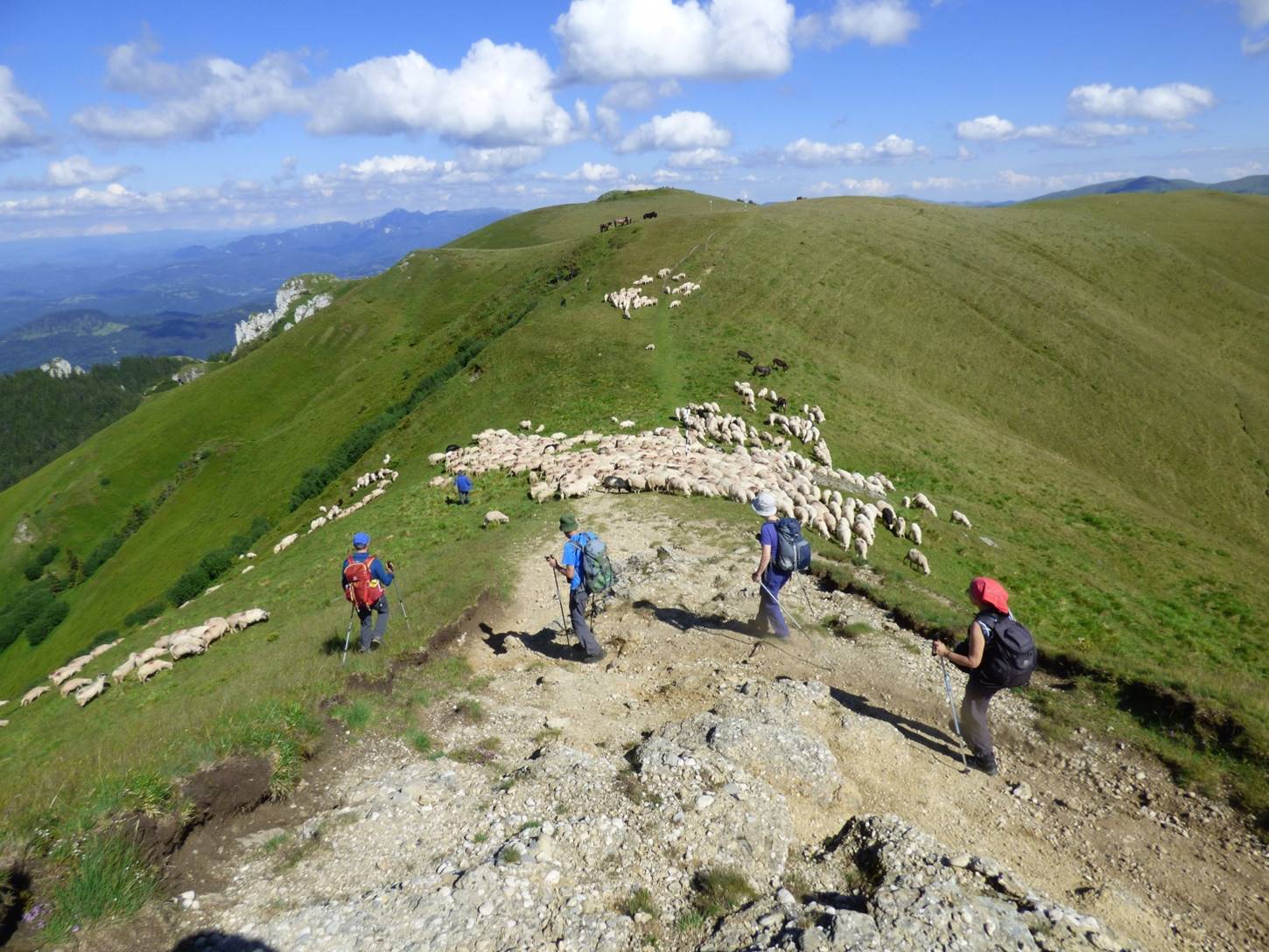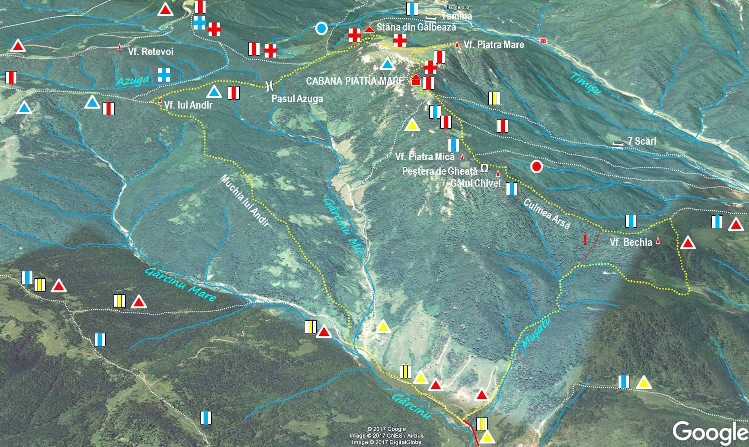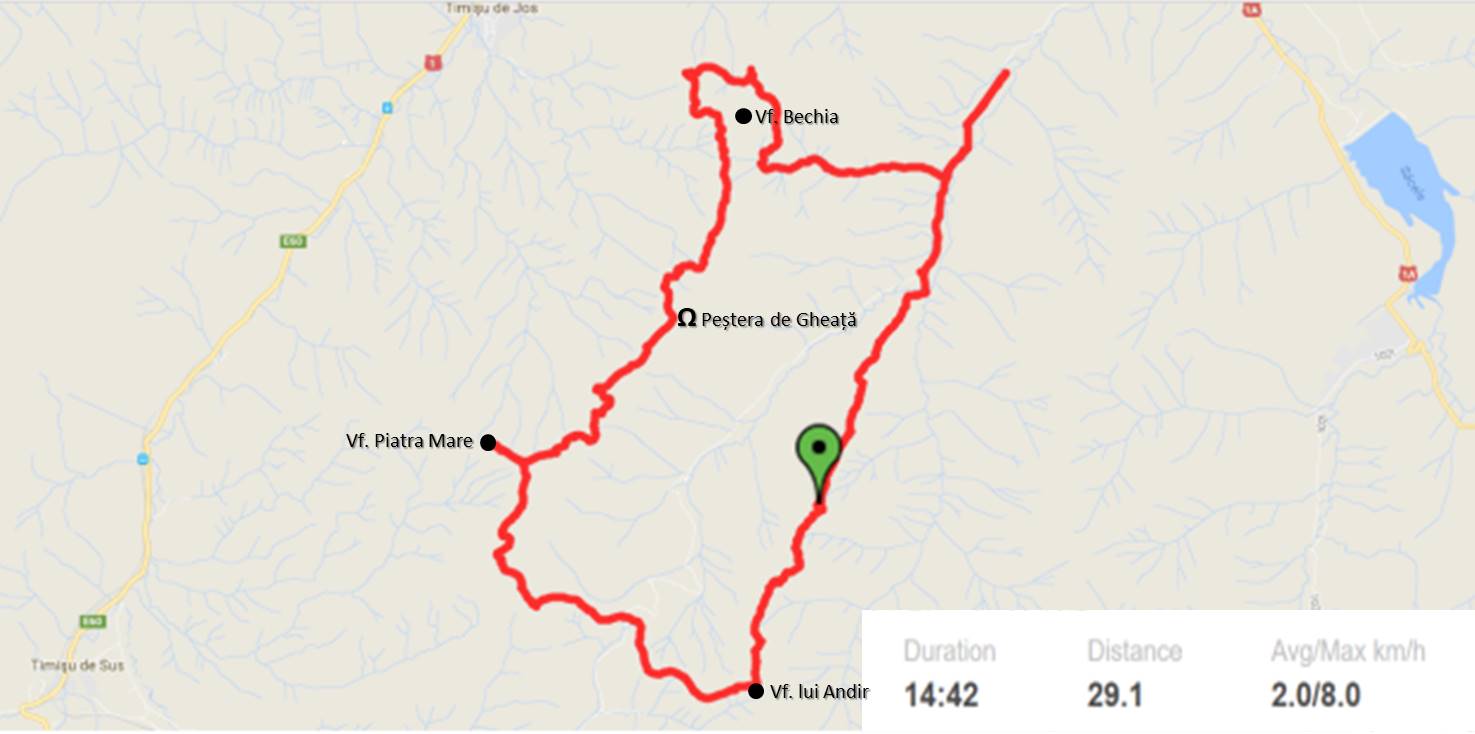 Traseu [9 iulie 2017]: Gura Mușatului – Valea Gârcinului – Muchia lui Andir – Vf. lui Andir – Pasul Azuga – Poiana Stânei Pietricica – Stâna din Gălbează – Vf. Piatra Mare – Cabana Piatra Mare – Peștera de Gheață – Șaua Bechia – Valea Mușatului – Gura Mușatului