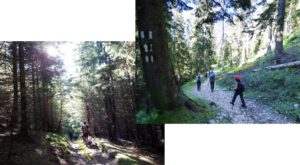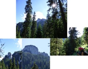 Cotim cu 90 de grade spre dreapta (vest) instalându-ne pe interfluviul Azuga-Gârcin, parte a culmii principale a Carpaților, după cum o … subliniază și prezența marcajului “bandă roșie”; ne va conduce împreună cu “triunghiul albastru”, …