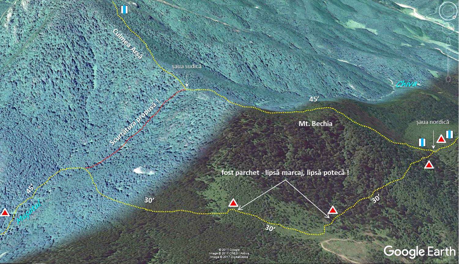 Suntem sub șaua estică a Bechiei (Bechia-Cărbunarea), cu aproape 100 m (altitudinali) mai jos de ea (20:45) !