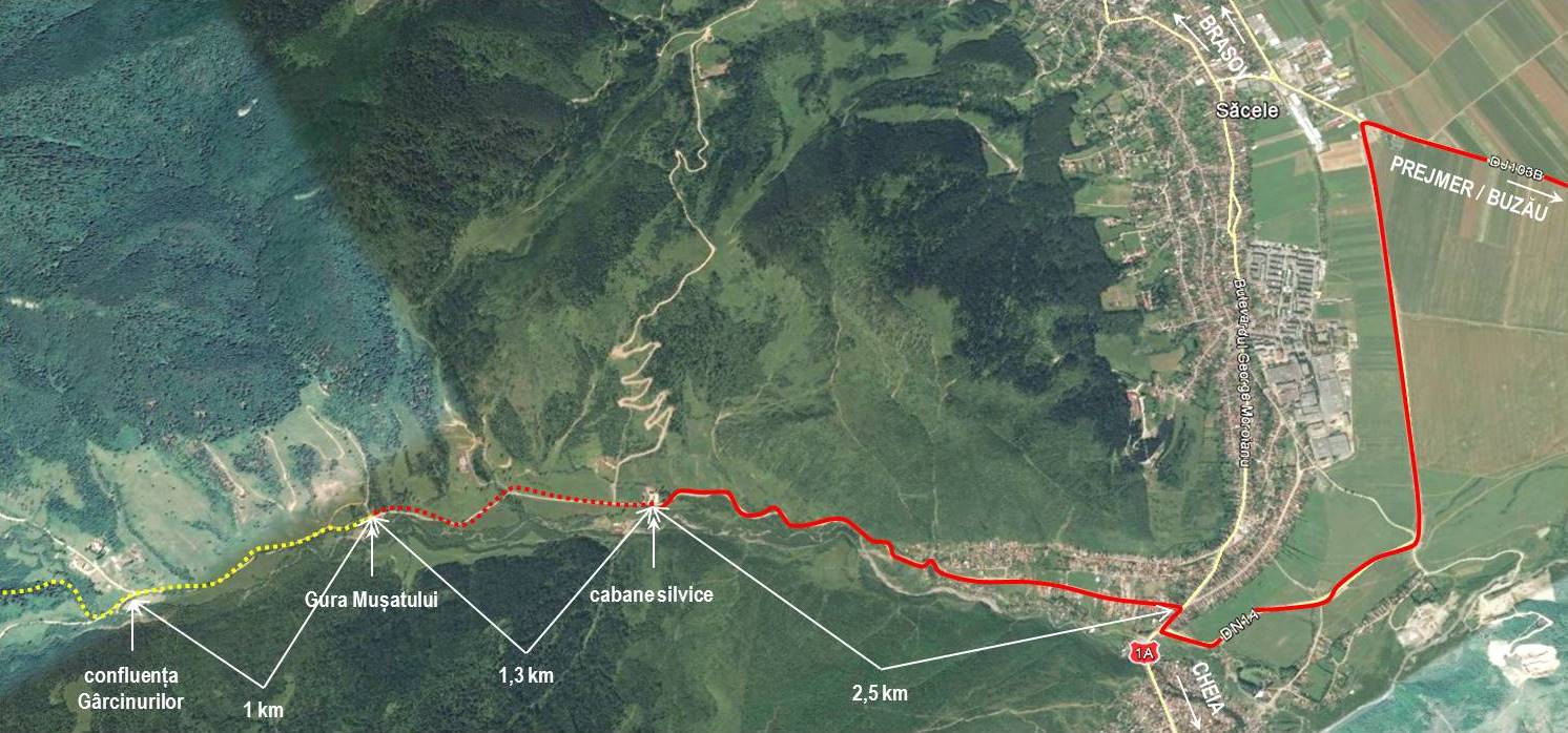 Punctul de intrare în traseu este condiționat de … starea barierei de lângă cabanele ocolului silvic pendinte de Primăria Săcele !