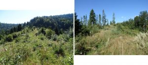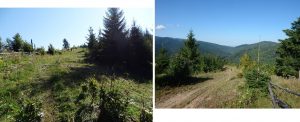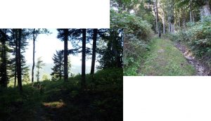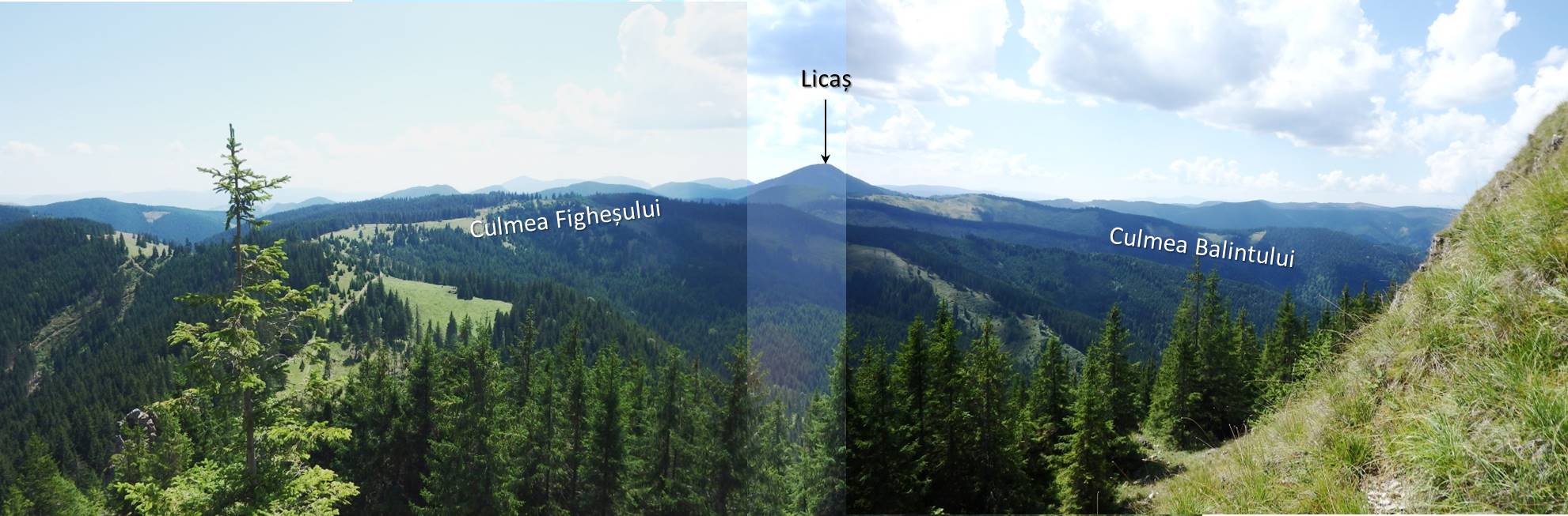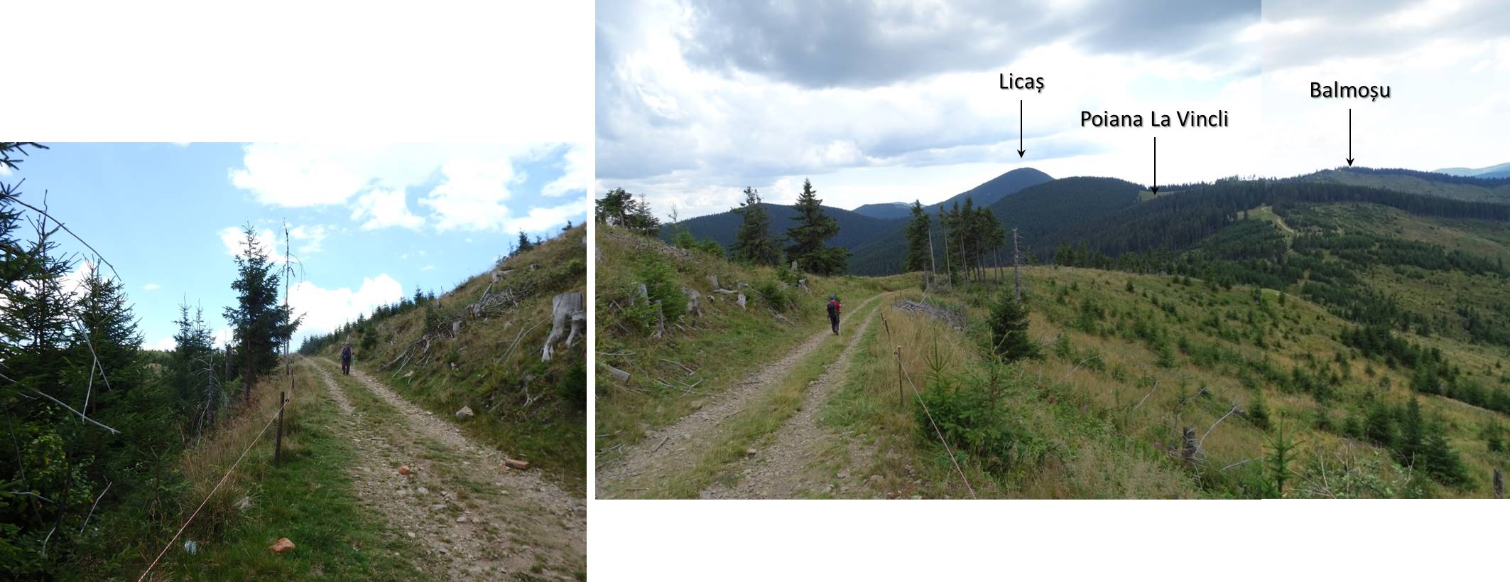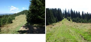 … îndată ce depășim Poiana La Vincli, după circa 300 m, unde un capăt de drum de tractor face o breșă în perdeaua de molizi, părăsim drumul ce duce spre Licaș …