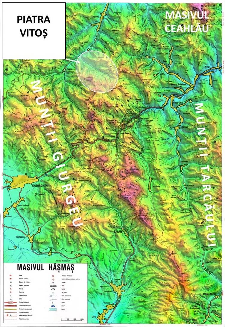 … și ne-am oprit la Giurgeu – pentru a cuceri cel mai înalt vârf al lor, Pirișca, de 1.544 m – (ziua 1 – click aici pentru fotoreportaj), Gurghiu – tot pentru topul lor, Saca Mare, de 1.776 m -, tot Gurghiu – pentru a vedea Pietrele Coloape – (ziua 3 – fotoreportajul, aici) și Călimanii – pentru Scaunul Domnului (ziua 2 – click aici pentru fotoreportaj). Din motive foarte dependente de noi – în drum spre traseul pentru Saca Mare, în Pasul Bucin, am constata că ne-am uitat actele la pensiune, așa că am făcut cale întoarsă – am renunțat la traseu, optând pentru unul mai scurt: la Piatra Vitoș din Hășmaș (ziua 4 – fotoreportajul, mai jos), hotărârea fiind motivată de două insatisfacții anterioare legate de cucerirea acestui obiectiv de primă mână al Hășmașului: o dată am renunțat în ultimul moment – “motivați” de ceață și lipsa de timp -, altă dată, deși am ajuns … sus, ceața nu ne-a lăsat să vedem nimic !