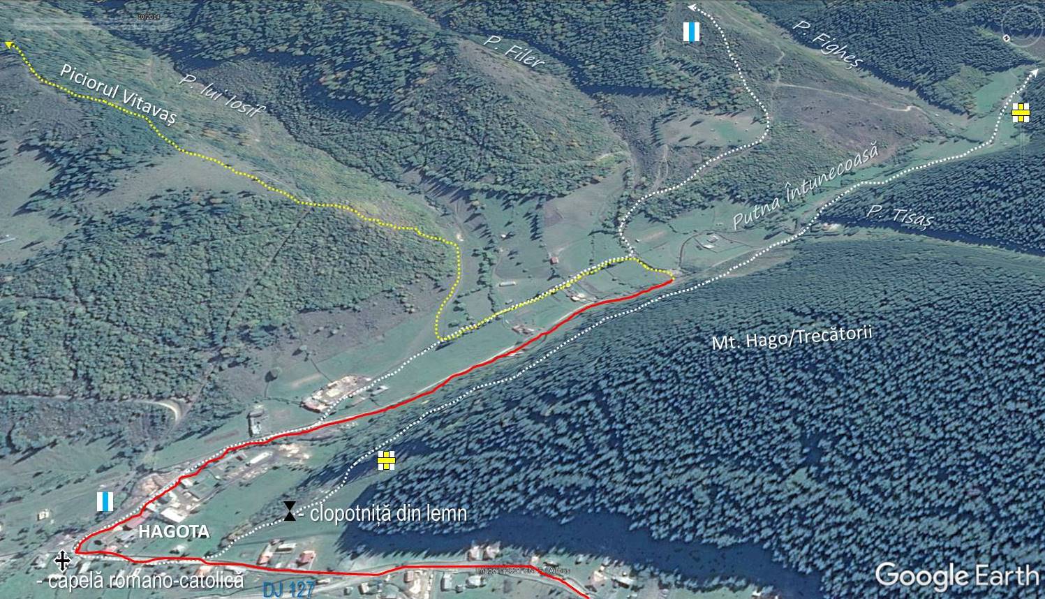 Din motivele precizate mai sus, timpul de care dispuneam de această dată fiind oarecum … amputat și dat fiind posibilitățile favorabile de acces auto cât mai aproape de baza obiectivului de care acum beneficiam, am optat pentru Hagota ca punct de intrare în traseu. Dintre cei 20 km de pe DJ 127 ce despart Ditrăul (acolo unde am părăsit DN 12), primii 9 (între timp s-ar putea să fie mai mulți), până în Pasul Țengheler sunt asfaltați; cei rămași sunt pe un drum de pământ acoperit cu pietriș, pe alocuri, desfundat.