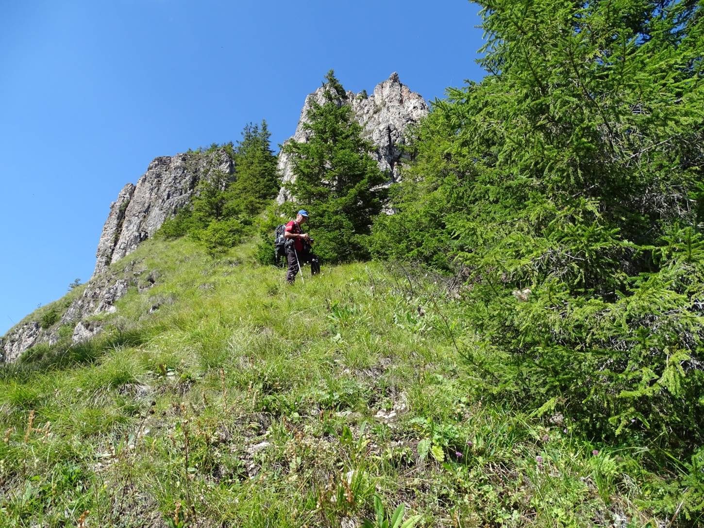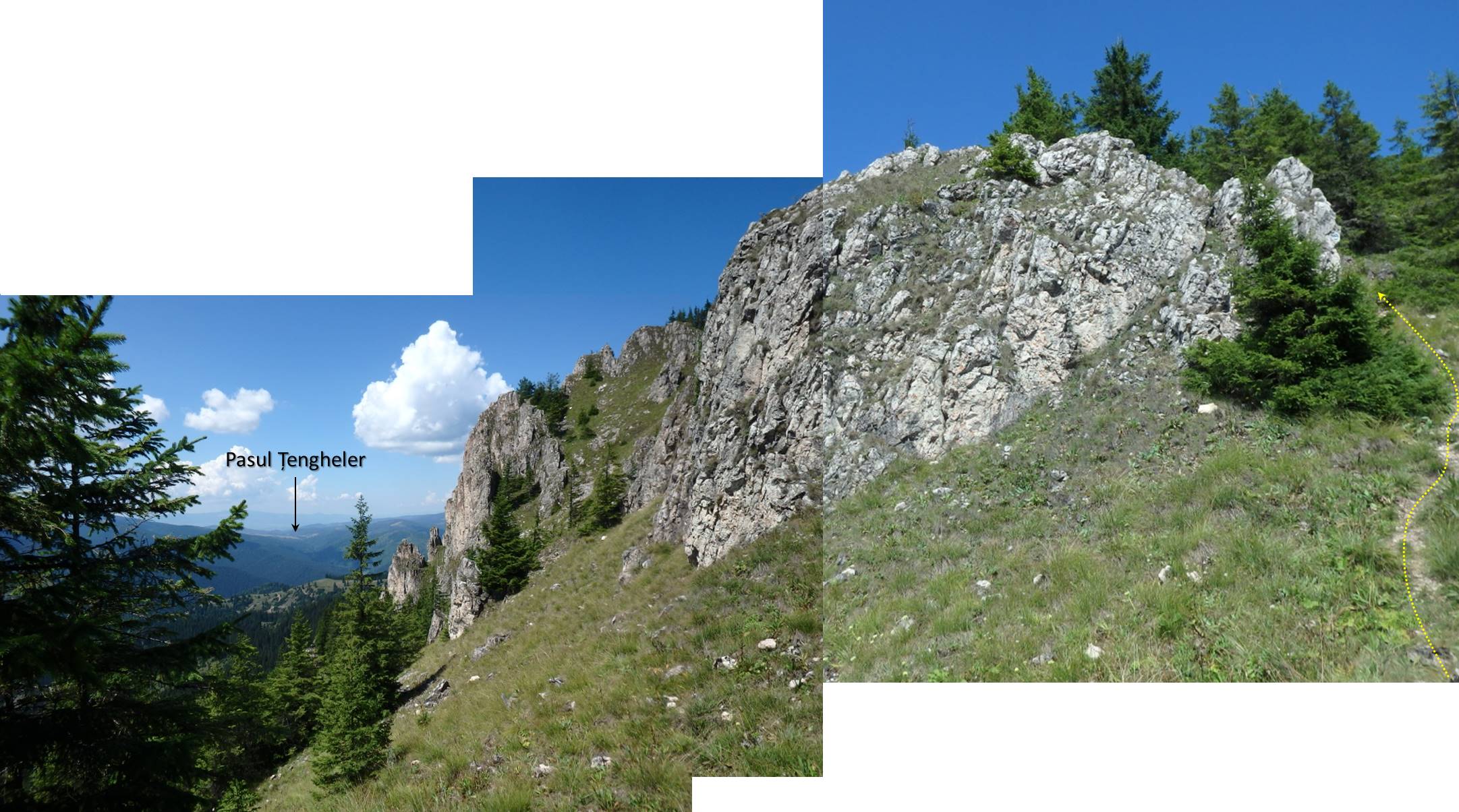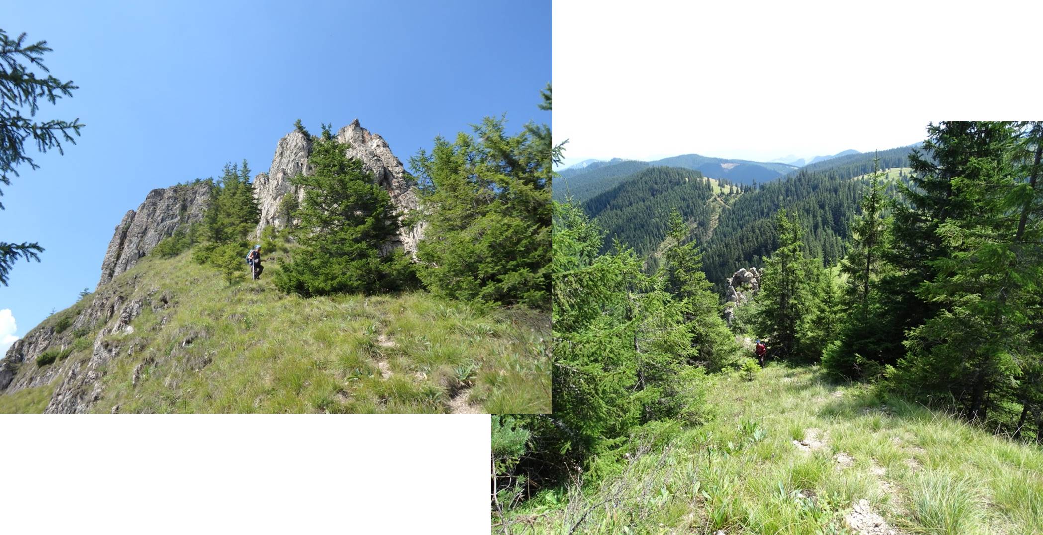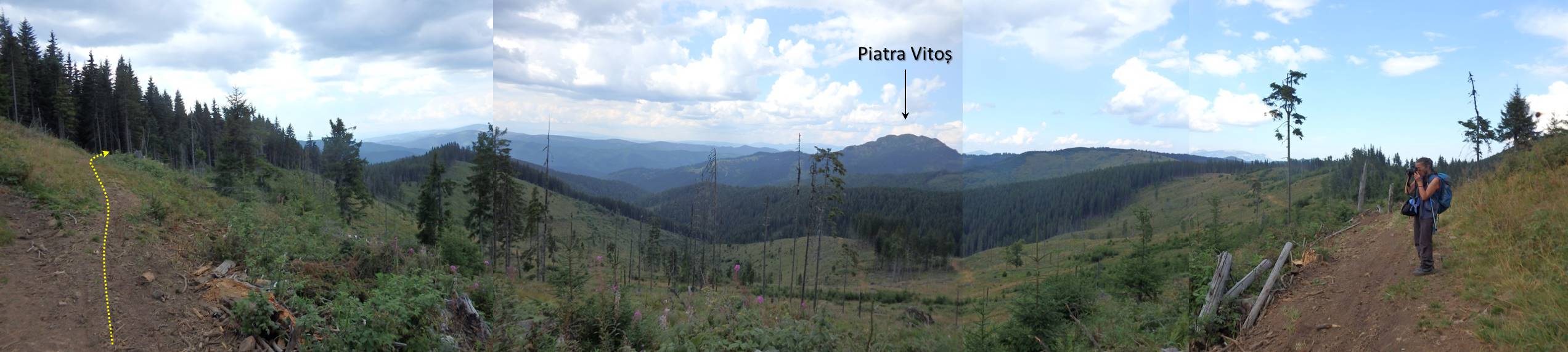 (De data aceasta) îi rămânem fideli și refuzăm și noi linia de cea mai mare altitudine, rămânând pe o curbă de nivel, mult sub creasta Pietrei Vitoș, …
