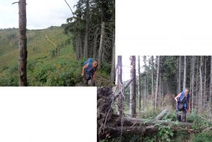 Am găsit traseele parcă părăsite, cel puțin în zona Hagota neexistând niciun marcaj. Deși intenția noastră era să urmăm traseul “banzii albastre”, dintr-un motiv mai greu de explicat, am preferat să urcăm un picior vecin.