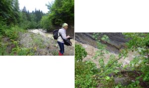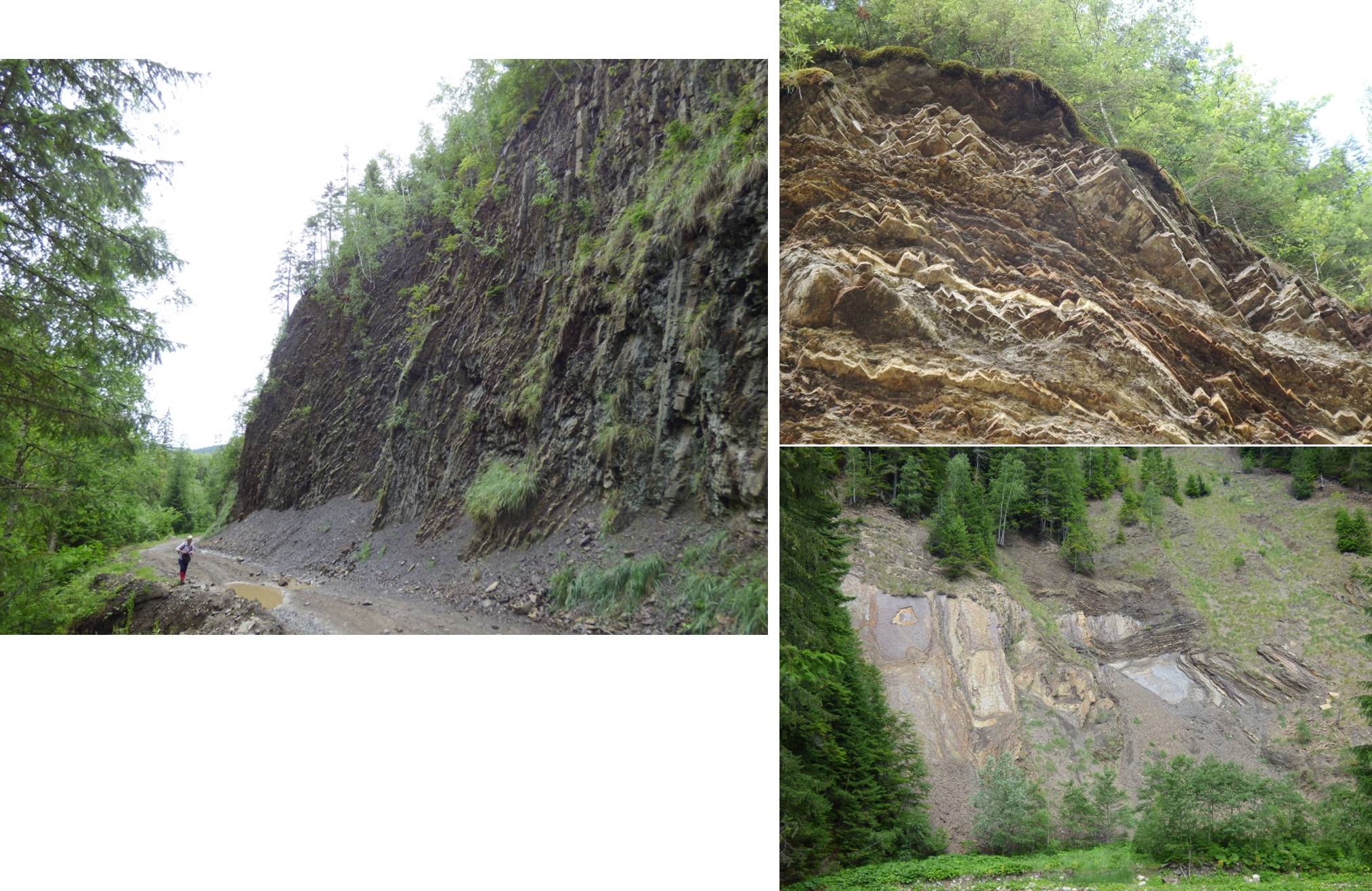 Ceva mai în amonte, ne atrag atenția câteva deschideri geologice; …