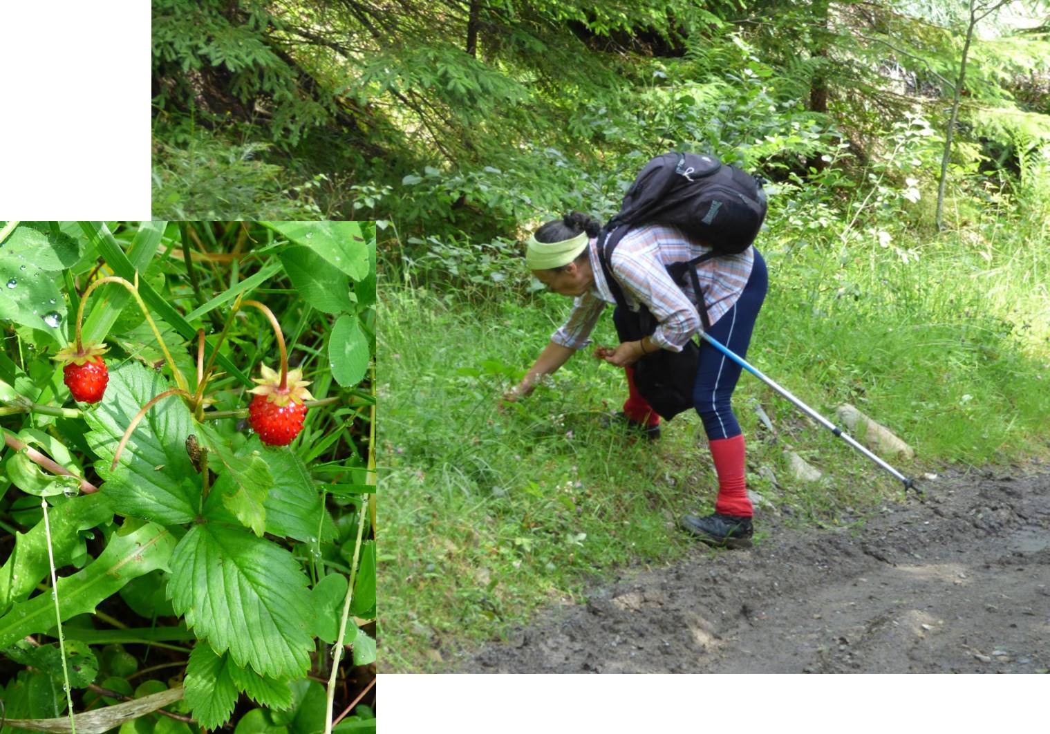 Ieșim repede într-o poiană cu … mulți fragi, …