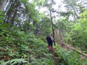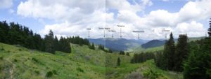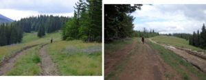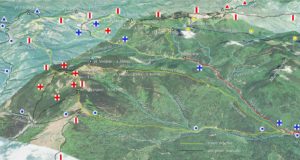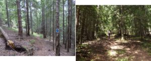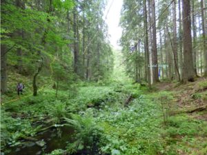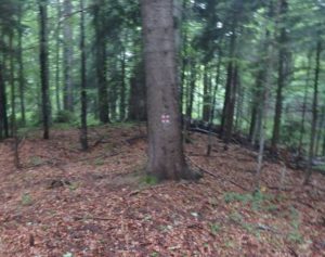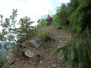 Doar trecem pe lângă ea (râmâne în stânga) și urmăm interfluviul pe care tocmai l-am prins și de pe care coborâm, după marcajul “cruce albastră”- când îl întâlnim (13:00) -, …