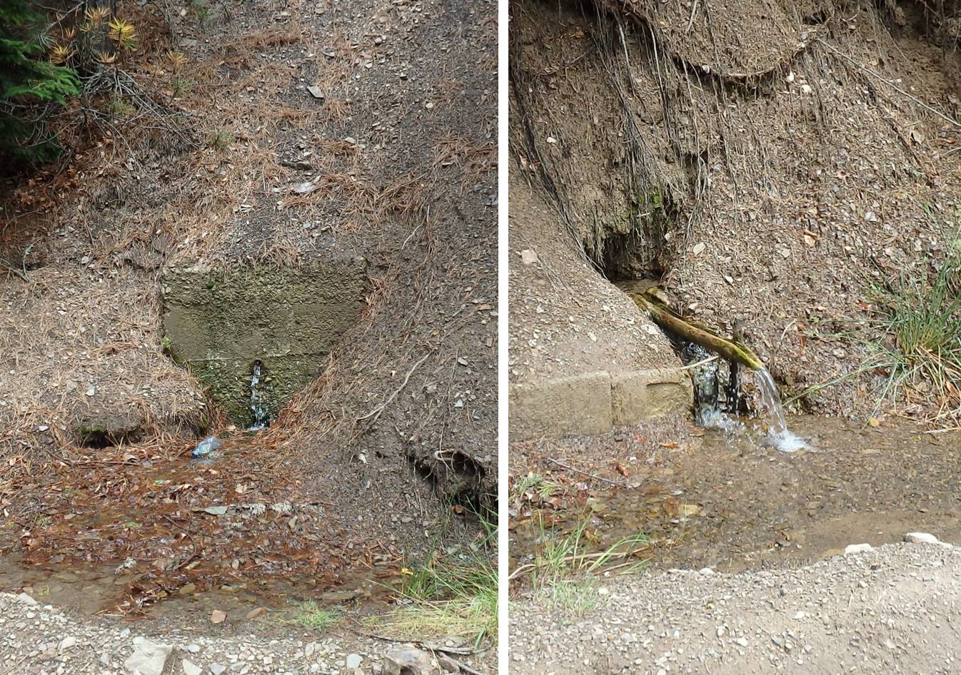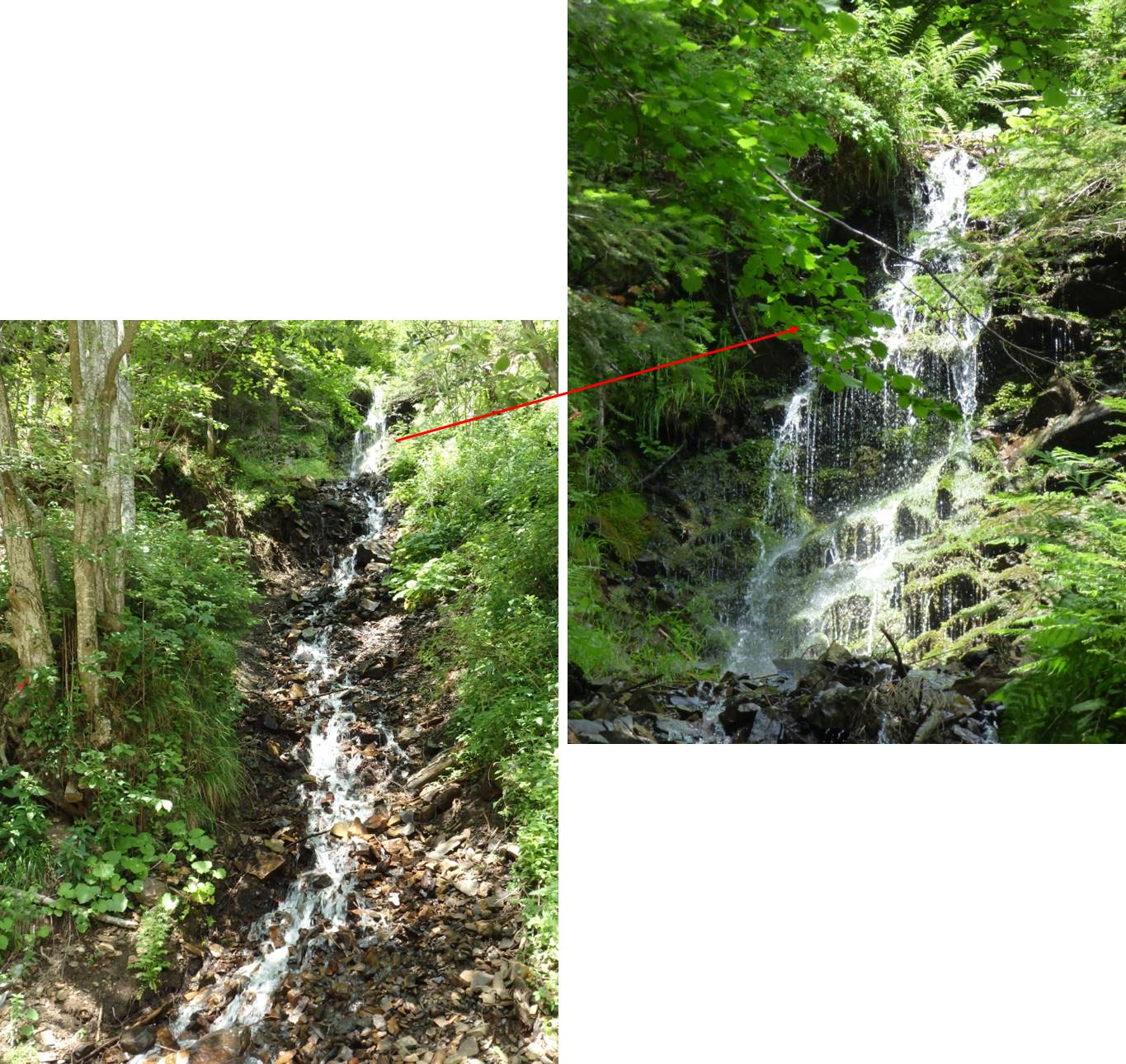 12:00: În fine, după 13 km de la gura Mișinei, valea Nărujei se deschide; suntem la Izvoare (zice-se, 7), unde marcajul “cruce albastră” va sui curând spre stânga, în timp ce noi căutăm semne ale vechiului marcaj “cruce roșie” ce-ar trebui să ducă, spre dreapta, la Lacul Negru.