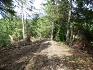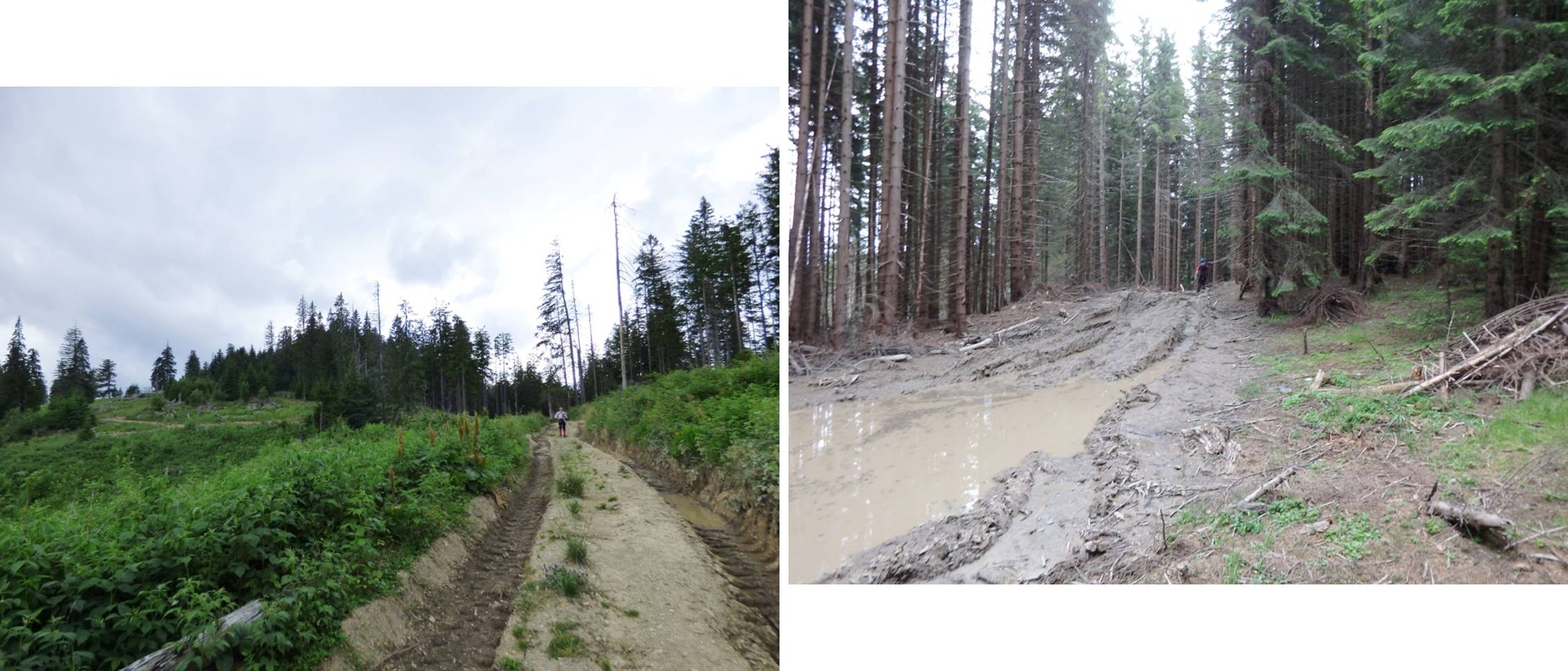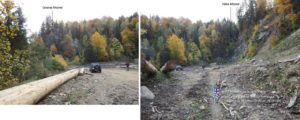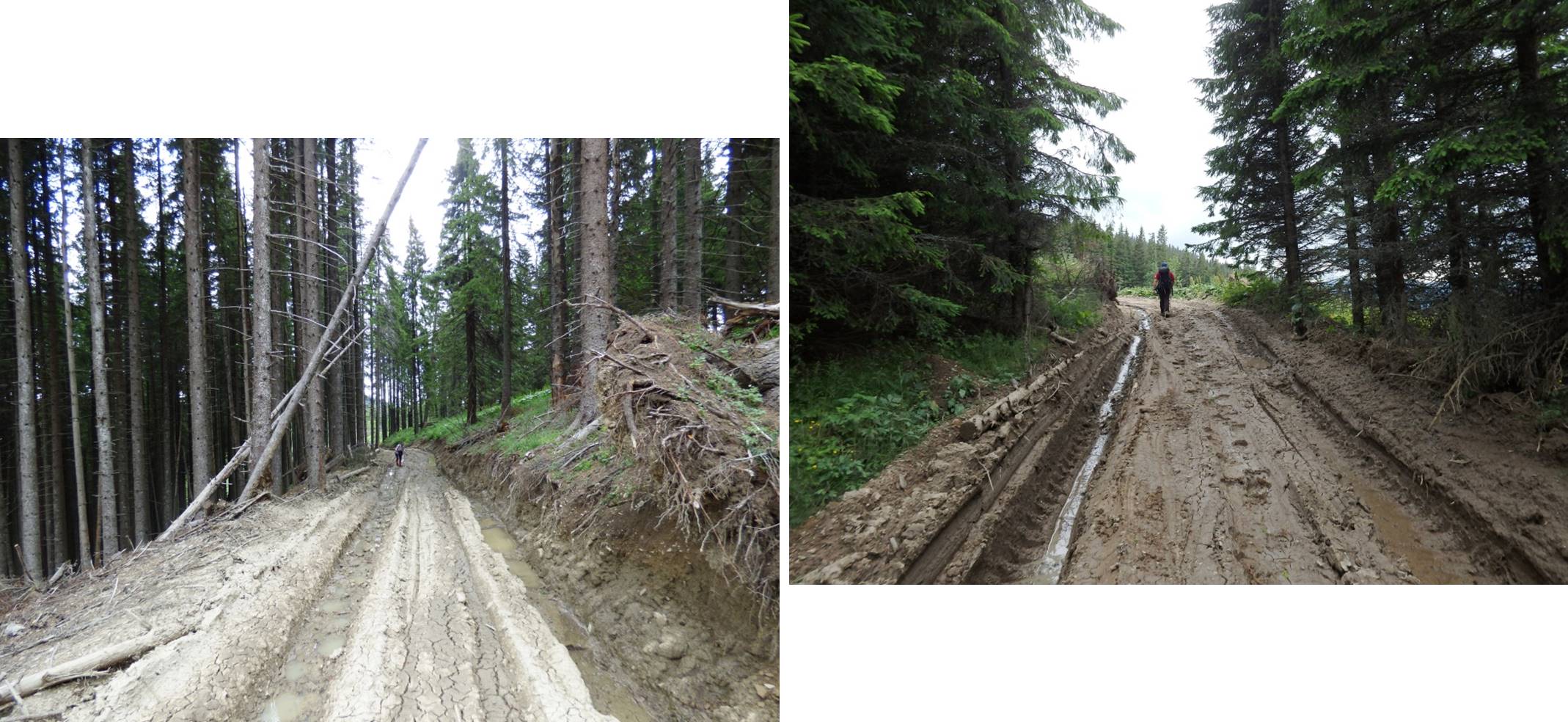 Nu remarcăm nicio cruce roșie, așa că ne ținem de drumul principal până întâlnim primul drum de exploatare ce pleacă spre dreapta, …