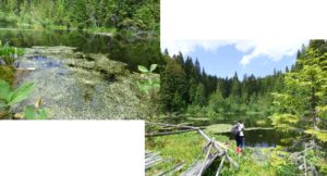 Lacului Negru i se mai spune Lacul cu Plămână, datorită … plămânei (trifoiște – Menianthes trifoliata) care bordează malul estic al lacului; din păcate, am ajuns, nu mult, dar după scuturarea florilor !