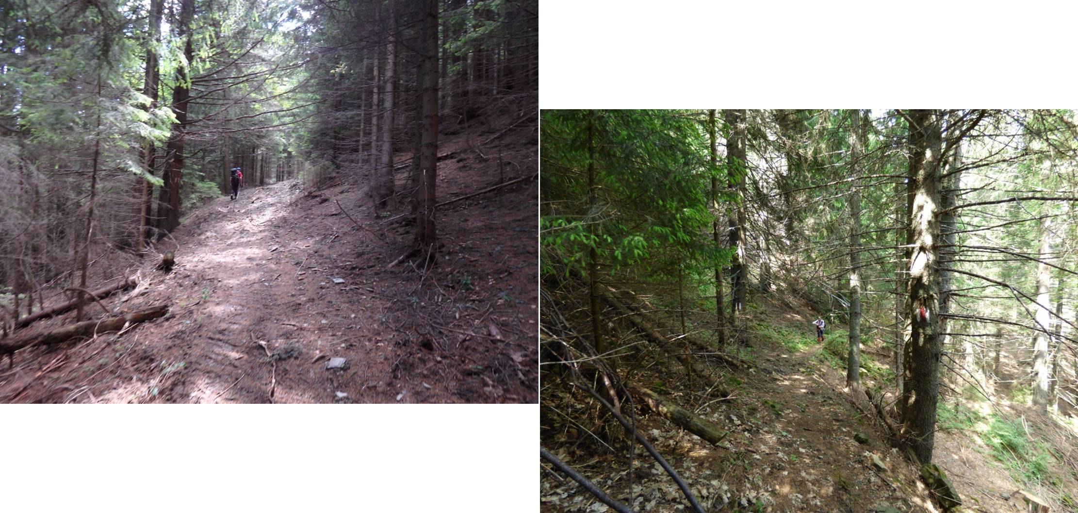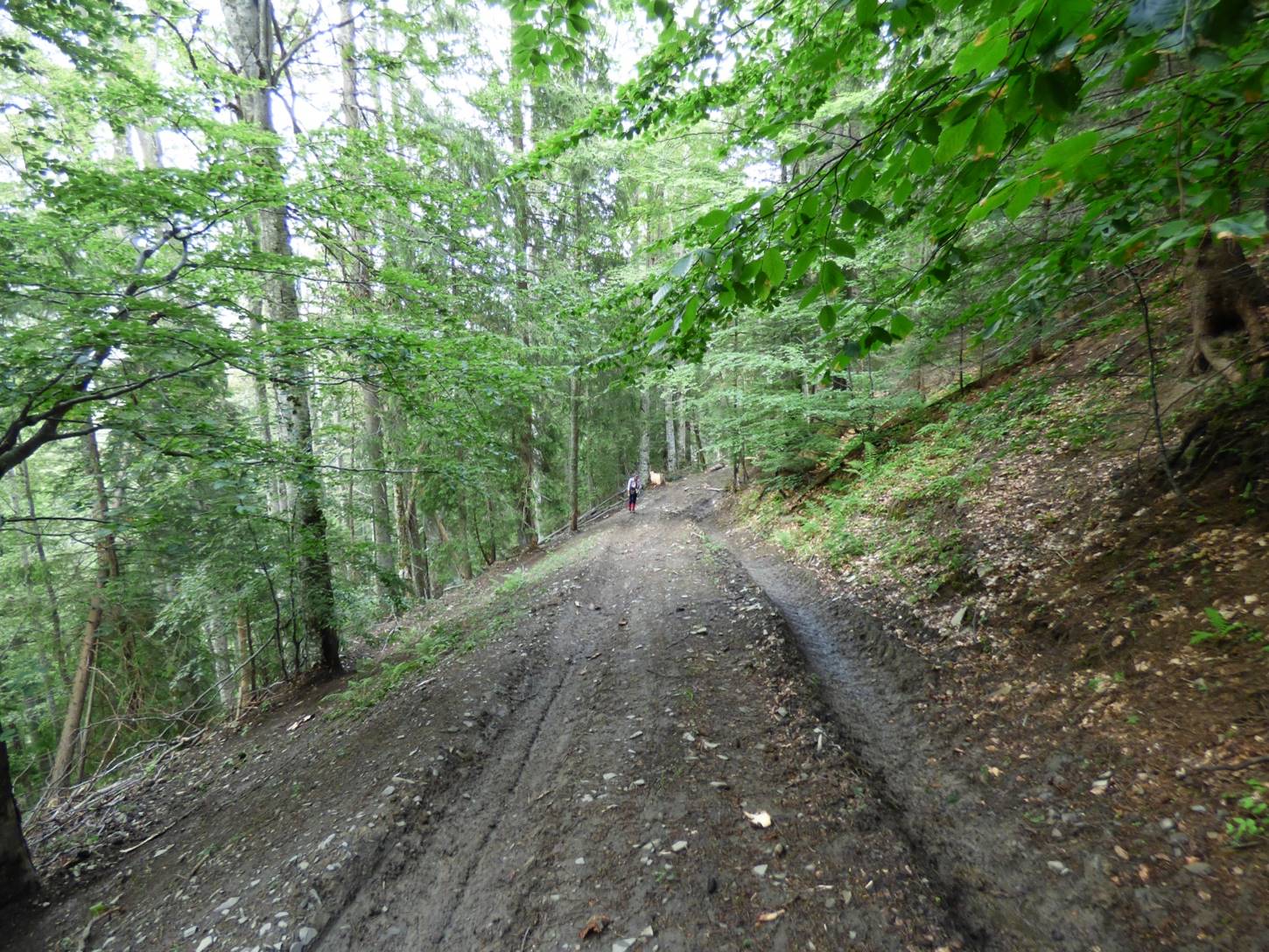 … și, din șaua ce urmează, trecem pe versantul estic al culmii – Piscul cu Paltini – și, tot pe un (mai vechi) drum forestier, îi tăiem coastele, mult pe sub ea !