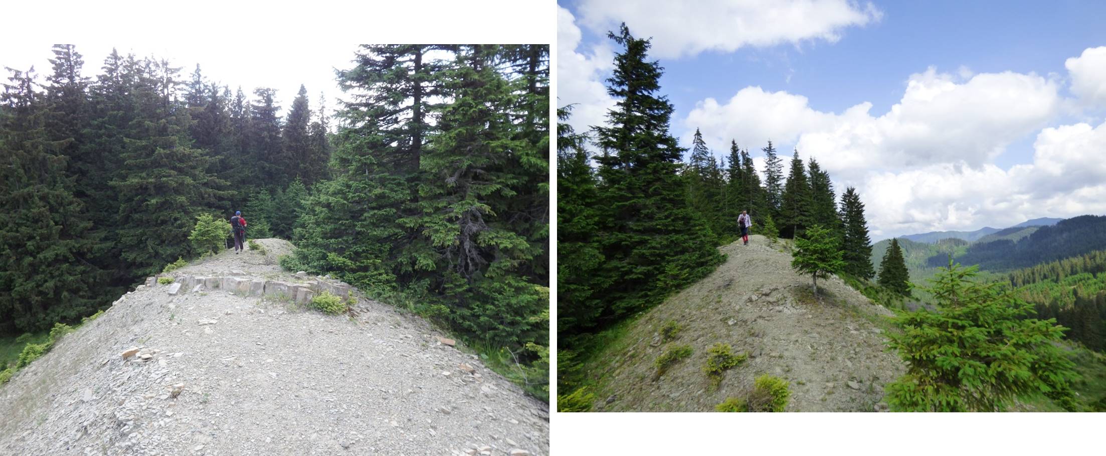 Drumul de tractor se termină, traseul continuând pe o potecă clară și, mai ales, bine marcată; dar și culmea are un aspect din ce în ce mai de creastă !