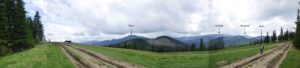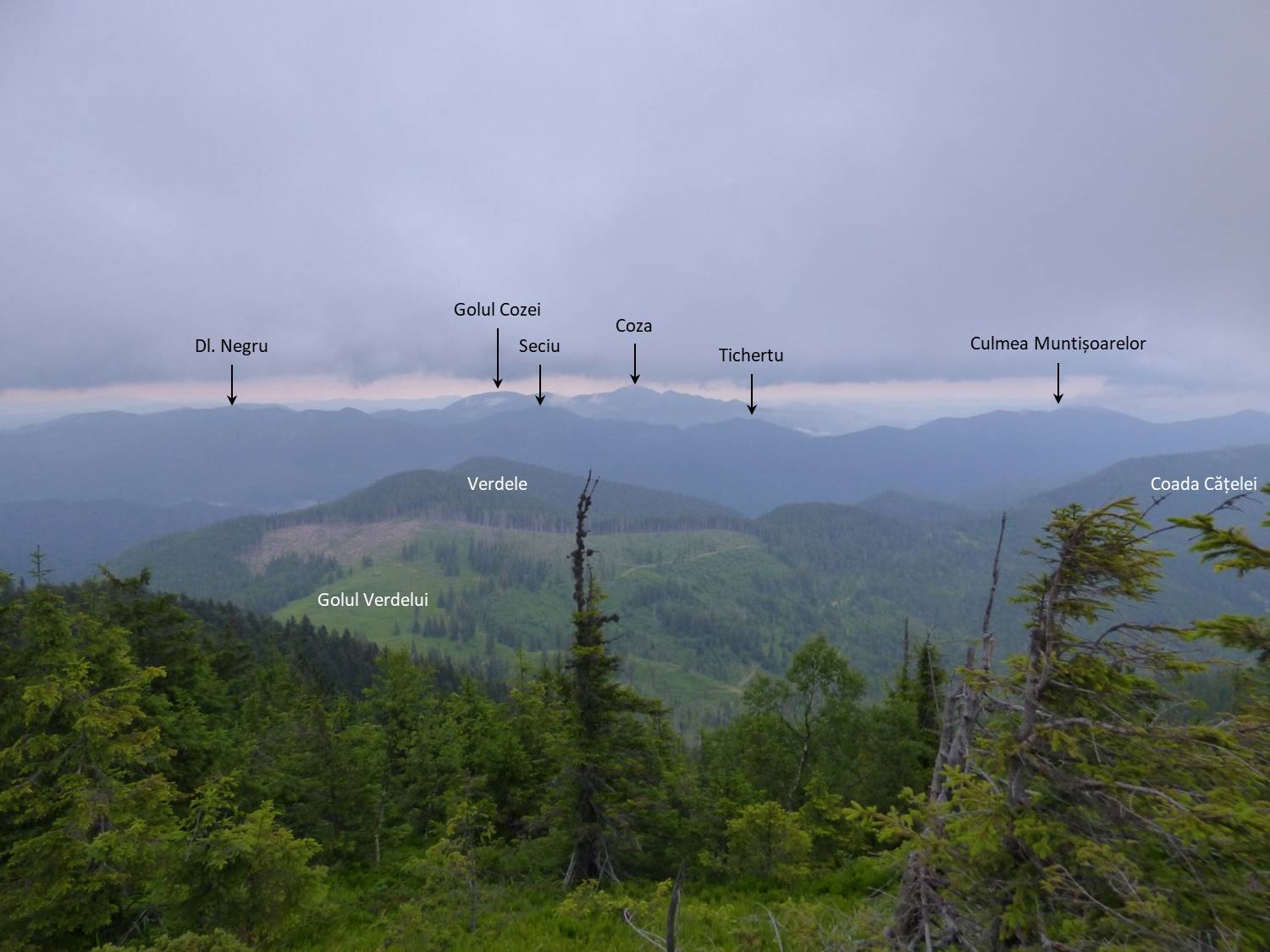 Spre est, nu departe de vârf se află punctul de revenire al traseului “cruce roșie” după ocolul prin Golul Verdelui.