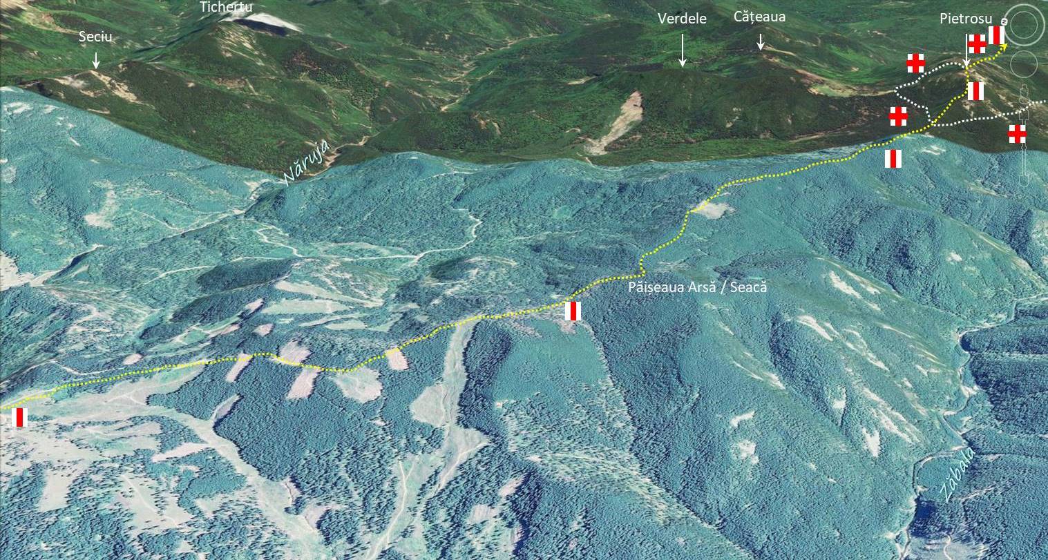 … de unde suntem conduși pe culmea, să-i spunem principală, de fapt, interfluviul Năruja-Tișița-Zăbala, …